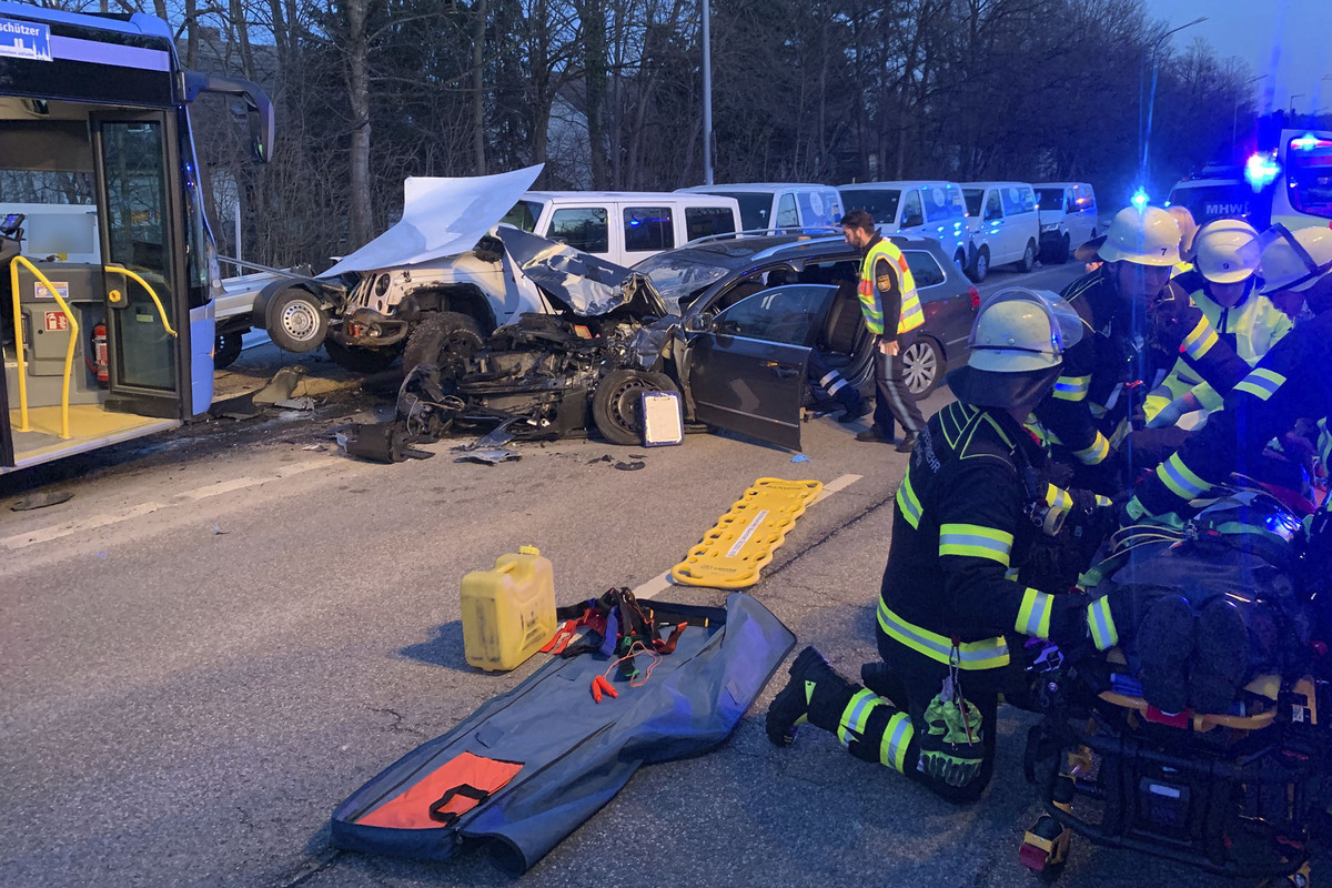 Moosach BY - Linienbus kollidiert frontal mit VW Passat