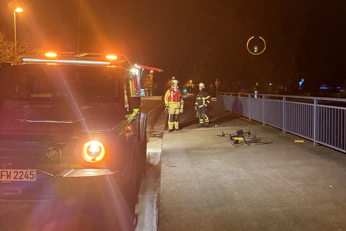 Da schwerere Verletzungen nicht ausgeschlossen werden konnten, wurden zur Suche im Nahbereich um die Unfallstelle ein Polizeihubschrauber und eine Drohne der Feuerwehr, jeweils mit Wärmebildkamera, eingesetzt.