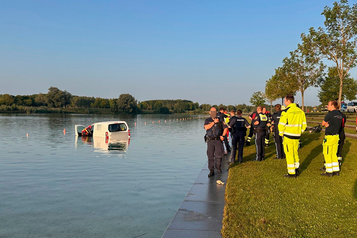In München-Riem ist ein 30-Jähriger am Mittwoch, 13. August 2025, mit seinem Auto in einen See gefahren. Badegäste griffen beherzt ein und verhinderten, dass der Pkw untergeht.