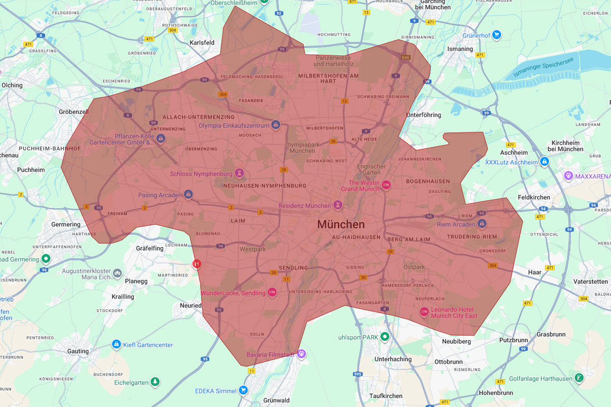 Für diesen Bereich hat die Polizei die Warnstufe "Gefahr" ausgegeben. (Bildquelle: Integrierte Leitstelle München)