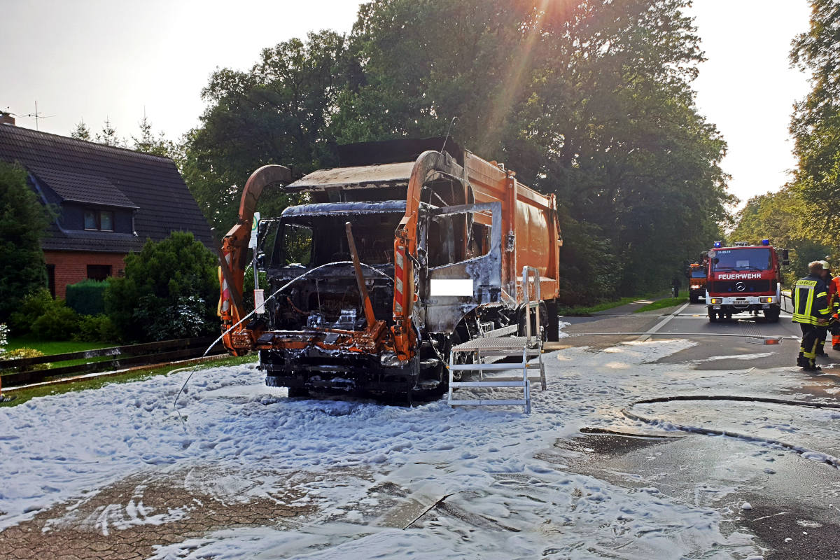 Ausgebranntes Müllfahrzeug (Bildquelle: Kreisfeuerwehr Rotenburg )