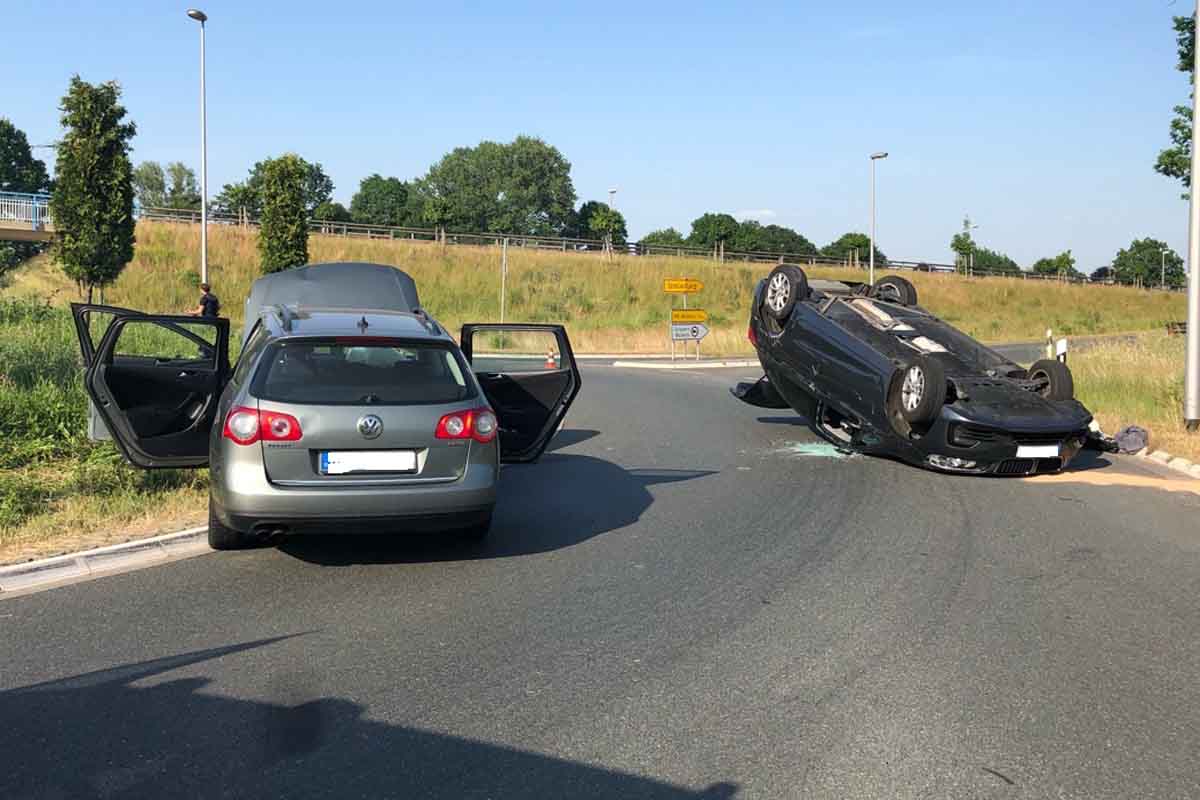 Als er in den Kreisverkehr an der Hiltruper Straße Ecke L858 einfuhr, achtete er ersten Erkenntnissen zufolge nicht auf den dortigen Verkehr und stieß mit einem BMW zusammen. Dieser schaukelte sich durch den Aufprall auf, überschlug sich und blieb auf dem Dach liegen.