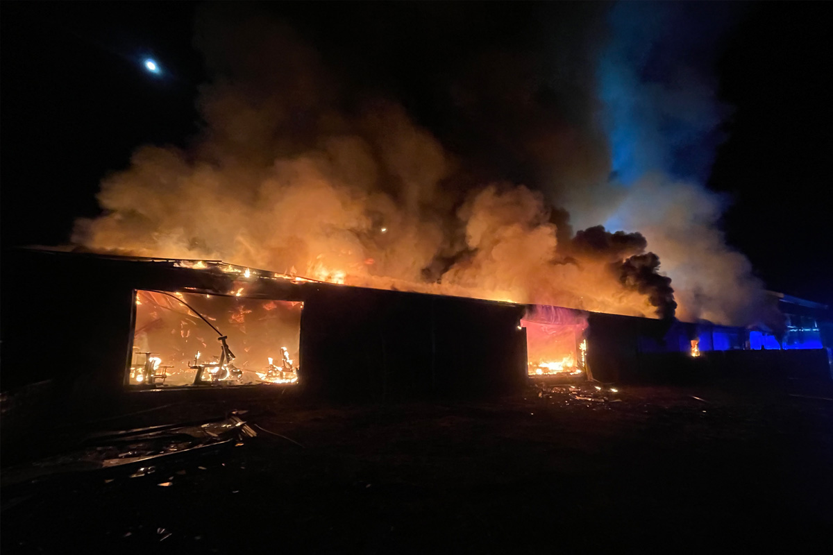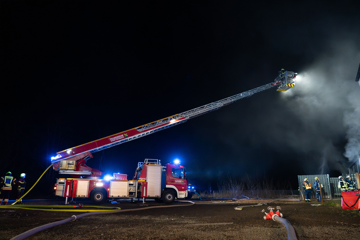 Feuerwehrleute eine starke Verrauchung im gesamten eingeschossigen Gebäude fest. Noch während sie einen Löschangriff aufbauten kam es zu einer Rauchgasdurchzündung. Dabei entzündeten sich schlagartig die im Gebäude aufgestauten brennbaren und extrem heißen Brandgase und setzten dieses komplett in Brand.