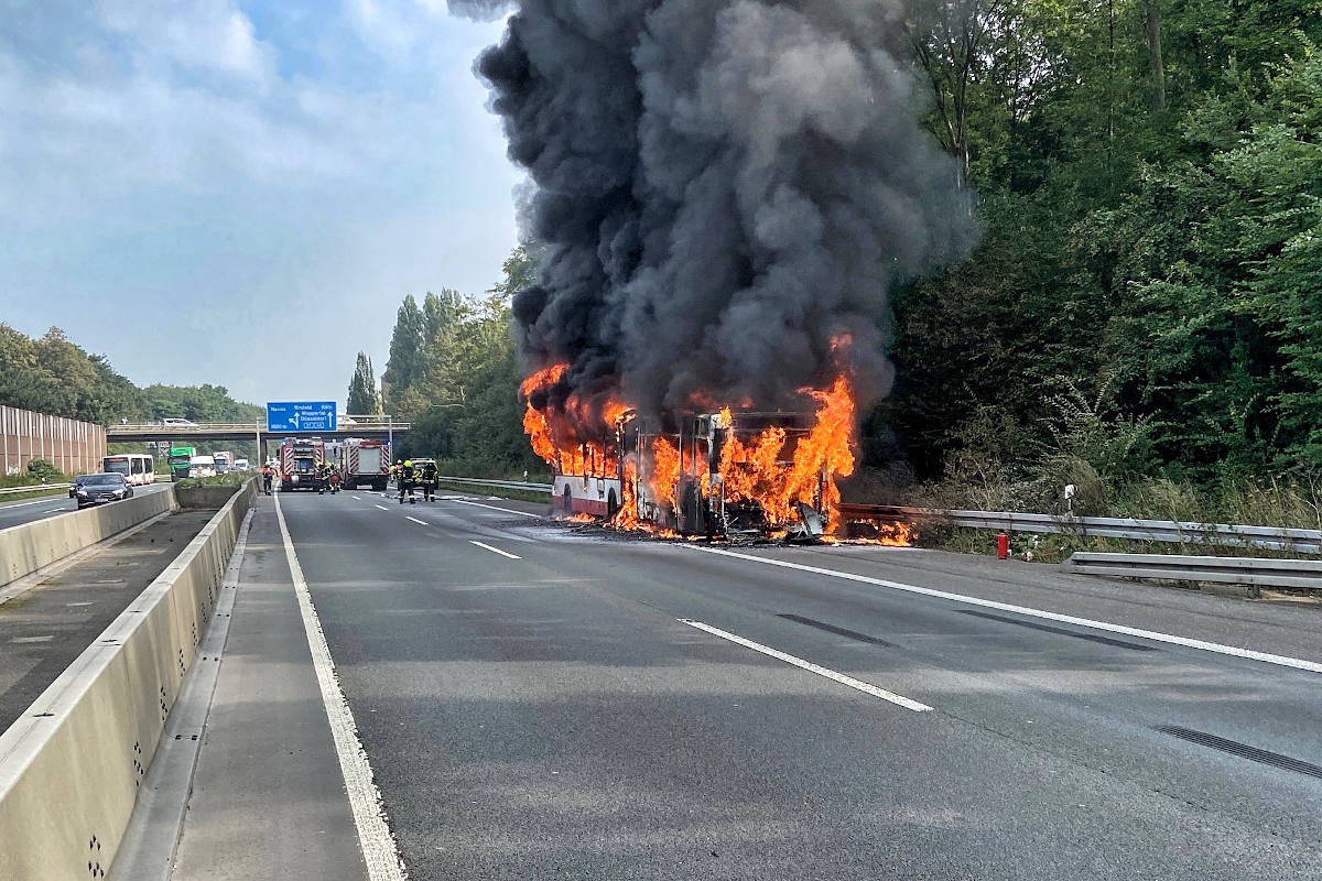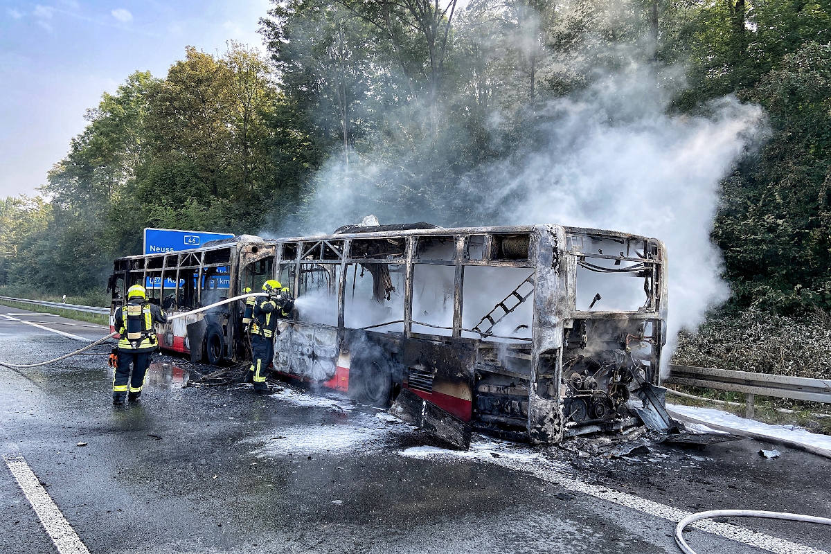Gelenkbus brannte auf A46 (Bildquelle: Feuerwehr Neuss)