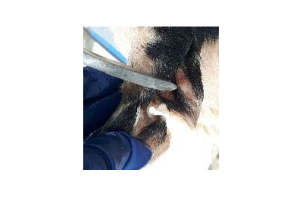 Ein Ohr mit gewaltsam entfernter Ohrmarke (Bildquelle: Polizeiinspektion Nienburg / Schaumburg)