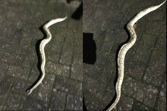 Eine 32 Jahre alte Anwohnerin aus der Bahnhofstraße machte gestern Abend vor ihrer Garageneinfahrt einen grausigen Fund! Auf ihrem Grundstück lag eine leblose, ca. 1,10 m lange Albino-Phyton-Schlange - ohne Kopf! Offenbar hatte ein anderes Tier der Würgeschlage den Kopf abgebissen. Ein hilfsbereiter Nachbar beseitigte die Schlange in seinem Garten.