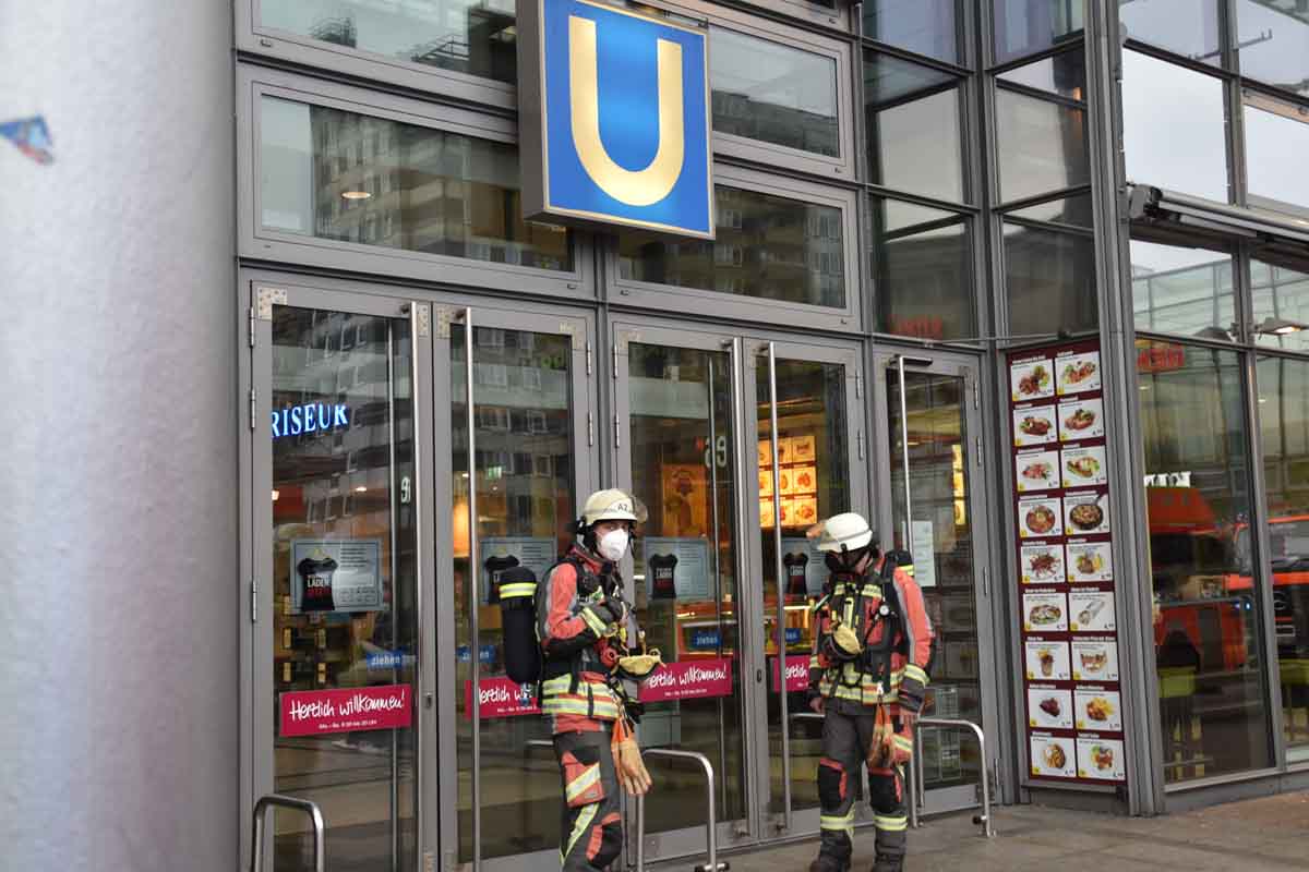 Als die ersten Einsatzkräfte wenige Minuten später vor Ort in der Berliner Allee eintrafen, schien sich die Meldung zu bestätigen. In der über dem U-Bahnhof befindlichen Ladenpassage des Herold Center-Neubaus war gestern eine starke Rauchentwicklung wahrnehmbar, welche aus dem darunter liegenden Bahnhofsbereich aufzog.