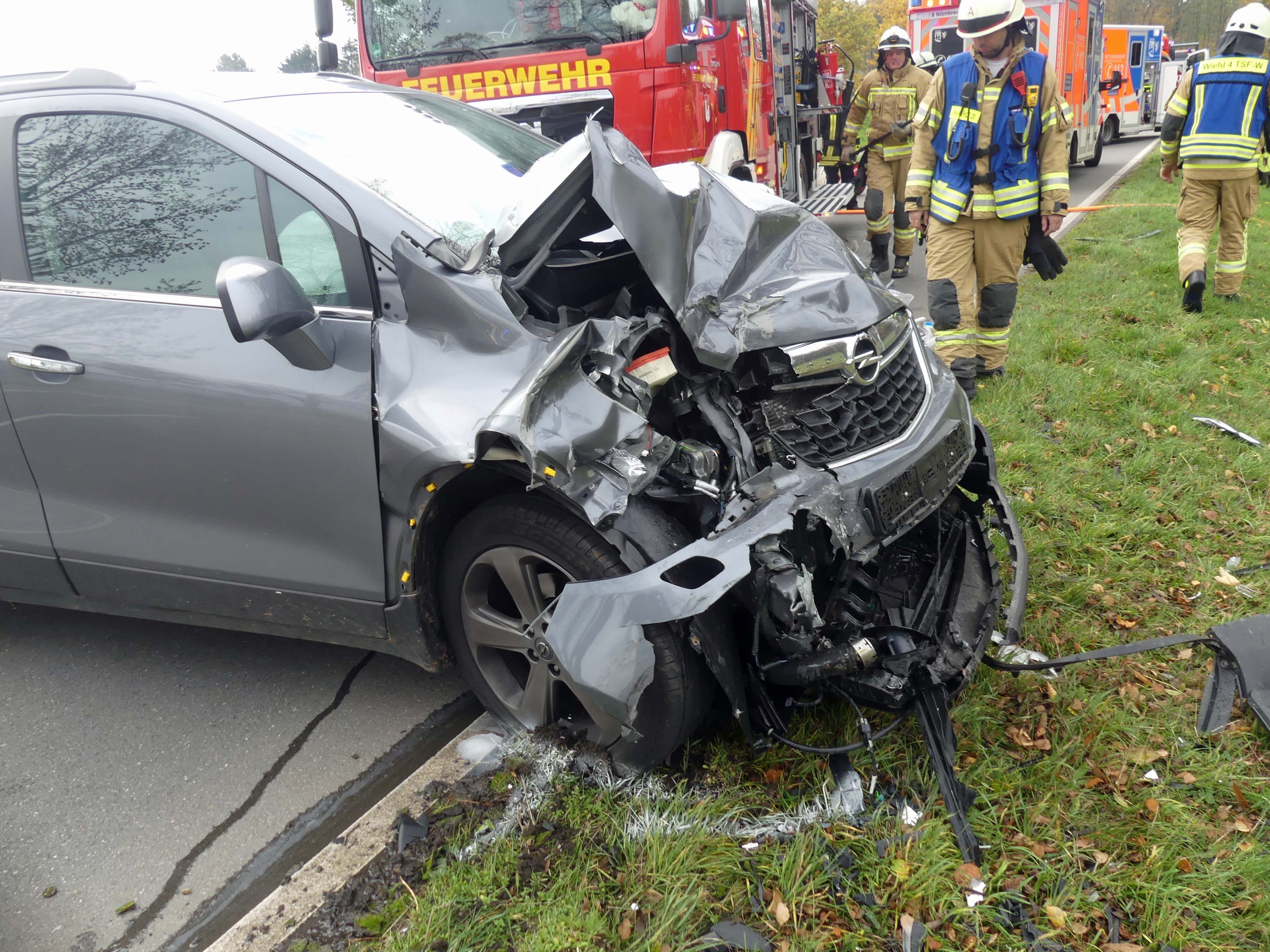 Gegen 11.15 Uhr war die aus dem Kreis Altenkirchen stammende 23-Jährige mit einem VW Polo auf der L 350 in Richtung Wiehl unterwegs. Auf einer langen Geraden kam sie zunächst aus ungeklärter Ursache nach rechts auf den unbefestigten Grünstreifen. Beim Versuch, den Wagen wieder auf die Fahrbahn zu lenken, verlor die 23-Jährige die Kontrolle über den VW Polo. Dieser stellte sich quer und stieß mit der Beifahrerseite voran auf der Gegenfahrbahn mit einem entgegenkommenden Opel Mokka eines 71-Jährigen aus Wiehl zusammen. Durch die Wucht des Aufpralls wurde der VW Polo auf eine angrenzende Wiesenfläche geschleudert, wo der Wagen auf der Fahrerseite zum Liegen kam.
