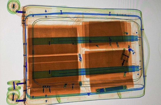 Die Röntgenaufnahme des Koffers zeigte deutlich die Auffälligkeit. (Bildquelle: Zollfahndungsamt München)