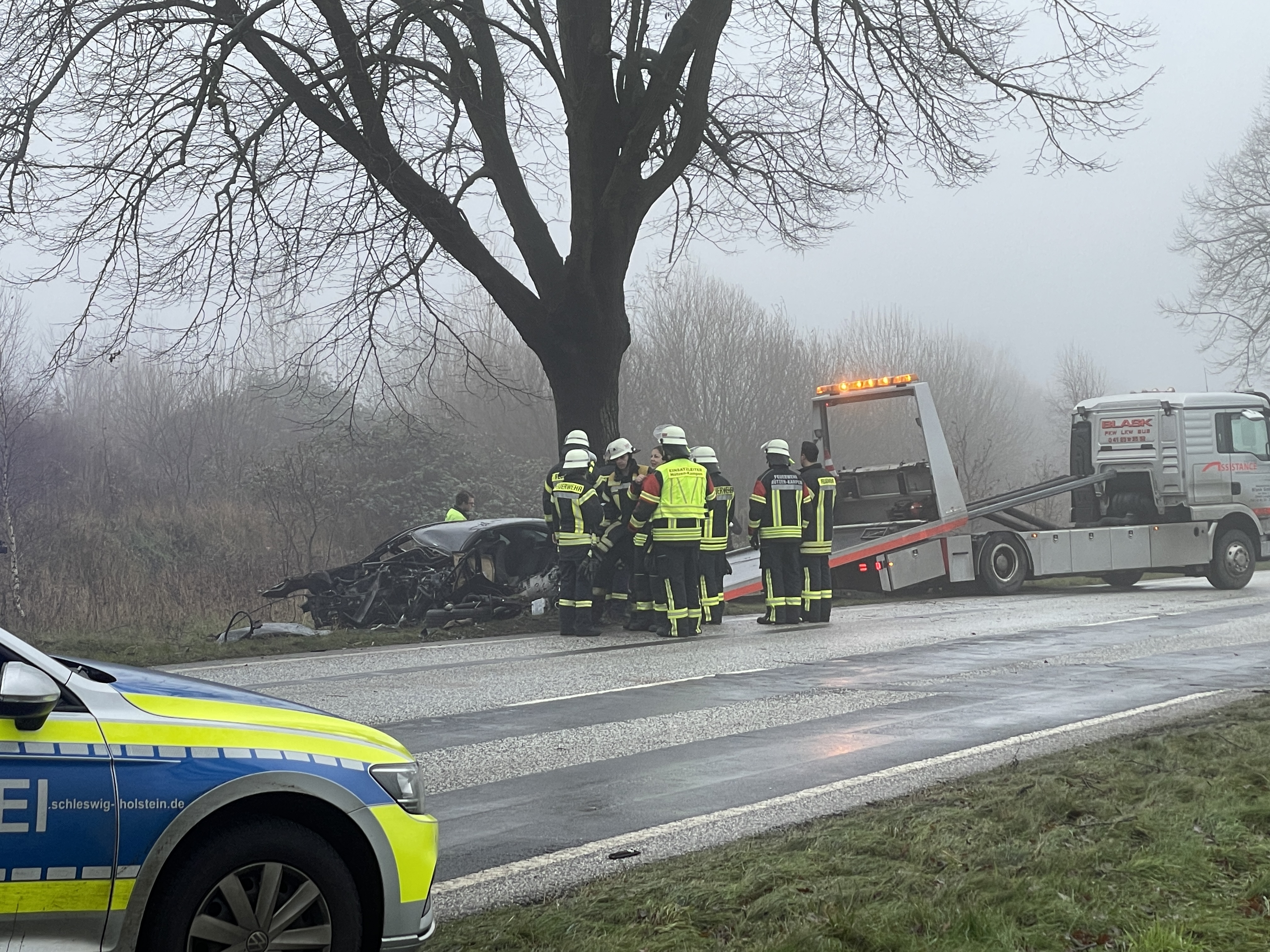 Mit dem Einsatzstichwort "TH Y" (Technische Hilfe mit Menschenleben in Gefahr) alarmierte die Kooperative Regionalleitstelle West in Elmshorn die für den Bereich zuständigen Freiwilligen Feuerwehren sowie den Rettungsdienst. Aus noch ungeklärter Ursache kollidierte ein mit einer Person besetzter Personenkraftwagen auf der Bundesstraße 4 einen Baum und kam neben der Fahrbahn zum Stehen.