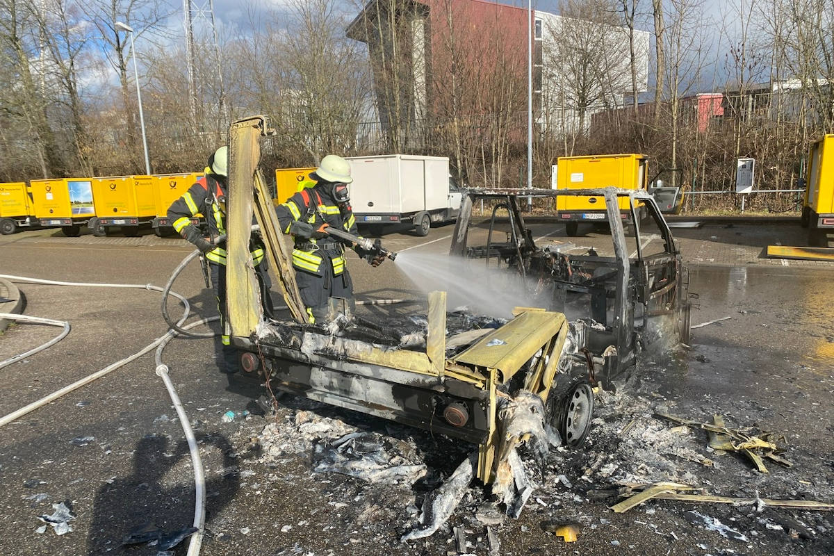 Elektro-Lieferwagen auf dem Gelände der Post in Offenburg ausgebrannt (Bildquelle: Feuerwehr Offenburg)