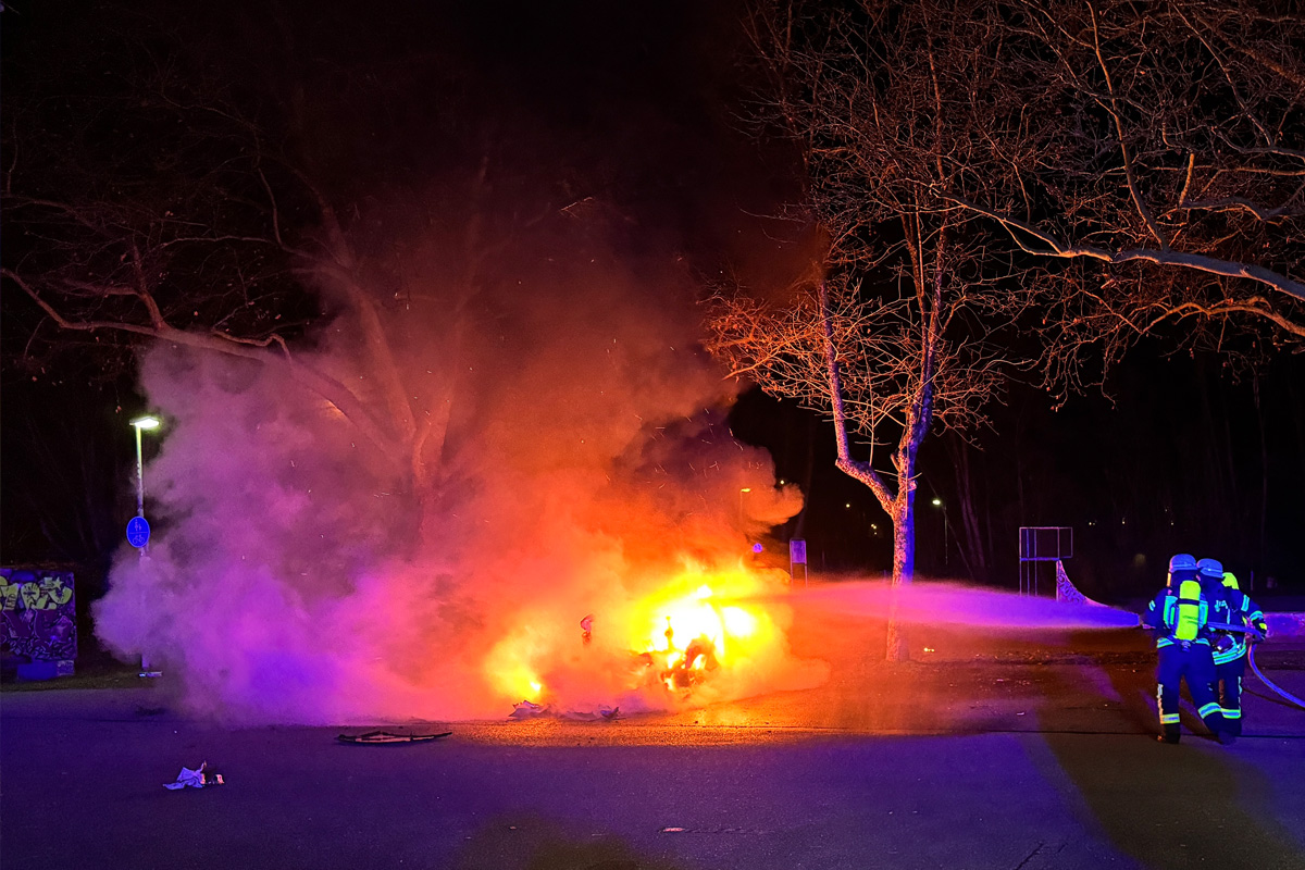 Da die Parkfläche ansonsten leer war, bestand trotz des intensiven Brandes und der starken Rauchentwicklung keine weitere Gefahr für Personen oder Fahrzeuge.