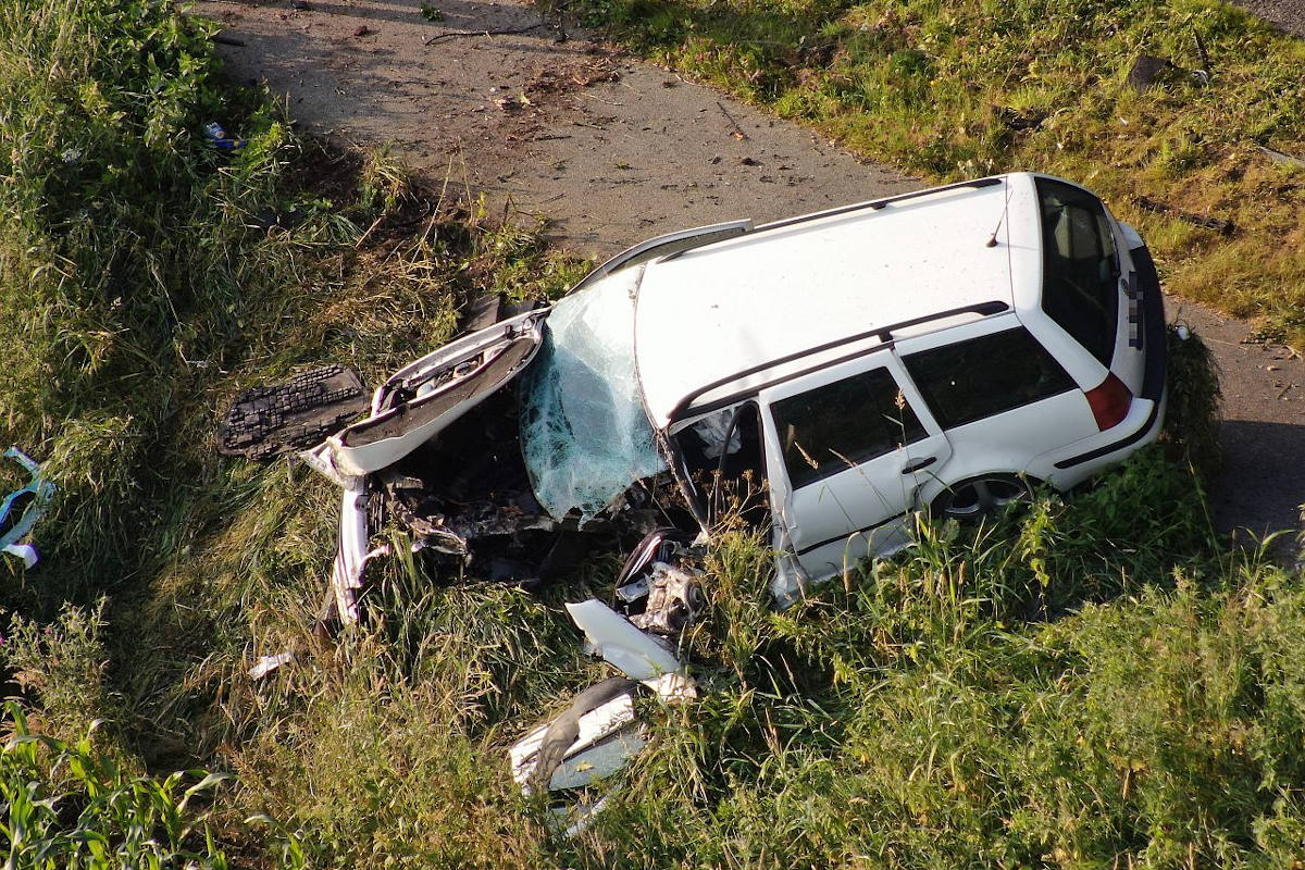 Ein 19-jähriger Fahrer eines VW-Golf Kombi aus Heinbockel hatte dort die Kontrolle über sein Fahrzeug verloren und war auf gerader Strecke alleinbeteiligt nach rechts von der Fahrbahn abgekommen. Er touchierte einen Straßenbaum und prallte anschließend gegen den nächsten Baum. Sein Fahrzeug dreht sich und kam schließlich total beschädigt im Seitenraum zum Stehen.