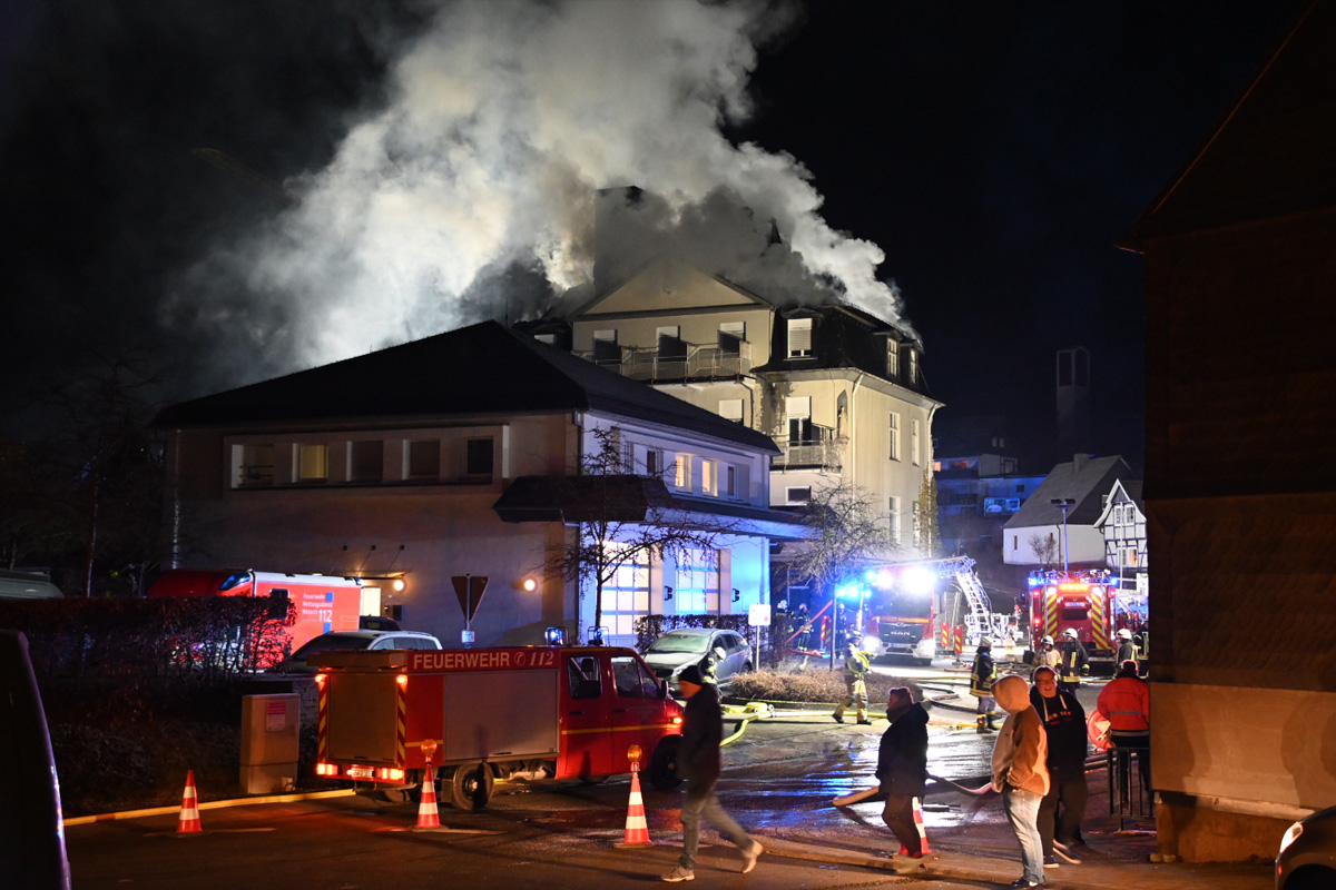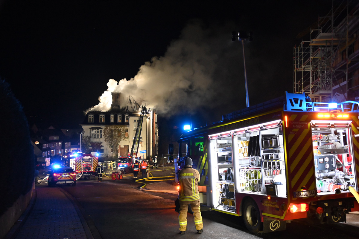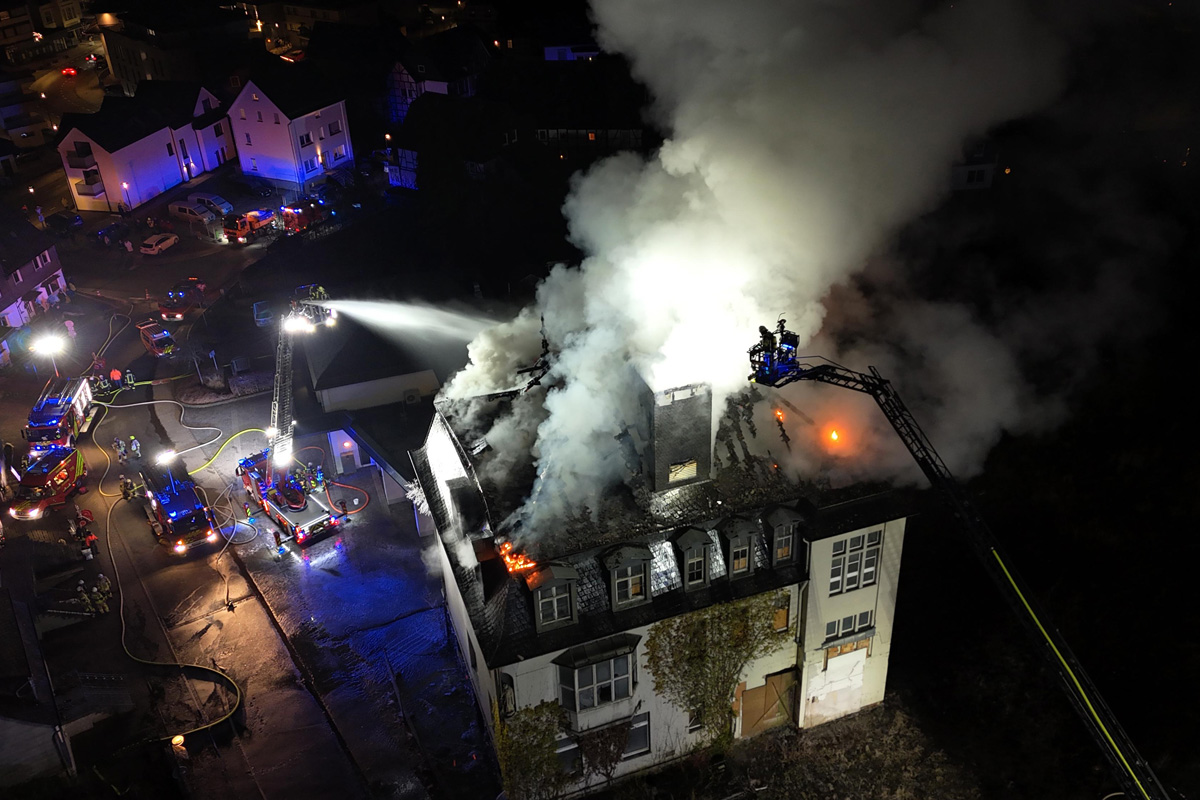 Olsberg. Der Dachstuhl des leerstehenden ehemaligen Krankenhauses stand beim Eintreffen der