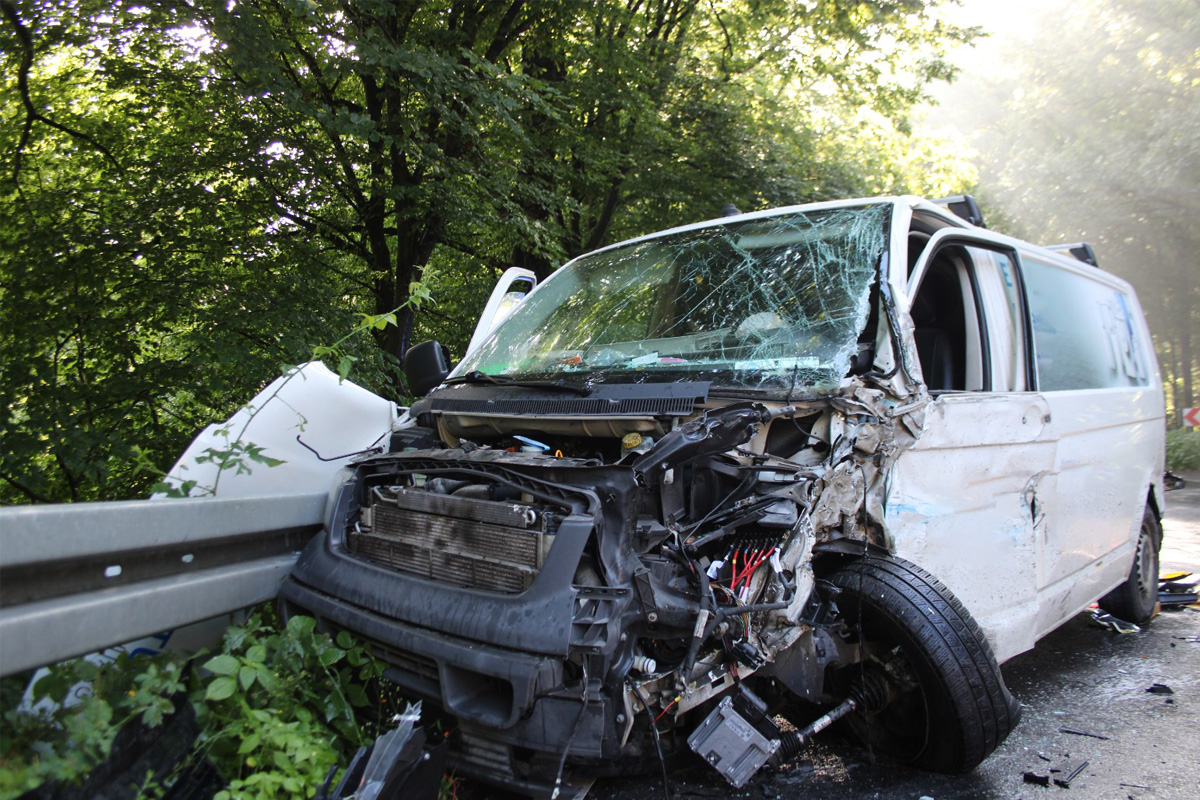 Wenige Sekunden später nahm der 57-Jährige einen lauten Knall wahr und sah im Rückspiegel, dass der Auflieger seines Sattelzuges mit dem VW kollidiert war. Durch die Wucht des Aufpralls geriet der Transporter von seiner Fahrspur ab und prallte gegen die seitlich der Fahrbahn befindliche Leitplanke.