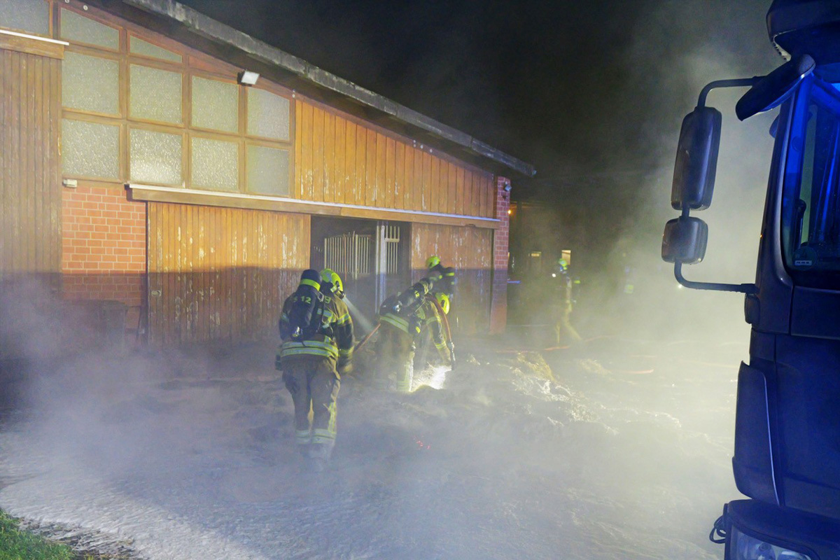 Hier war es in einem Pferdestall zu einem Brandereignis gekommen. Beim Eintreffen der ersten Einsatzkräfte hatte sich der Brand im Gang des Pferdestalls und vor dem Gebäude ausgebreitet.