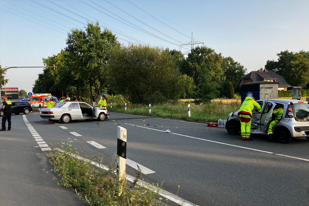 Am 13.08.2025 kam es in Paderborn (NW) zu einem schweren Verkehrsunfall mit zwei beteiligten Autos. Eine 23-Jährige wurde in ihrem Fahrzeug eingeklemmt und schwer verletzt. Beide Beteiligte kamen ins Krankenhaus. Die Feuerwehr war rund 90 Minuten im Einsatz.