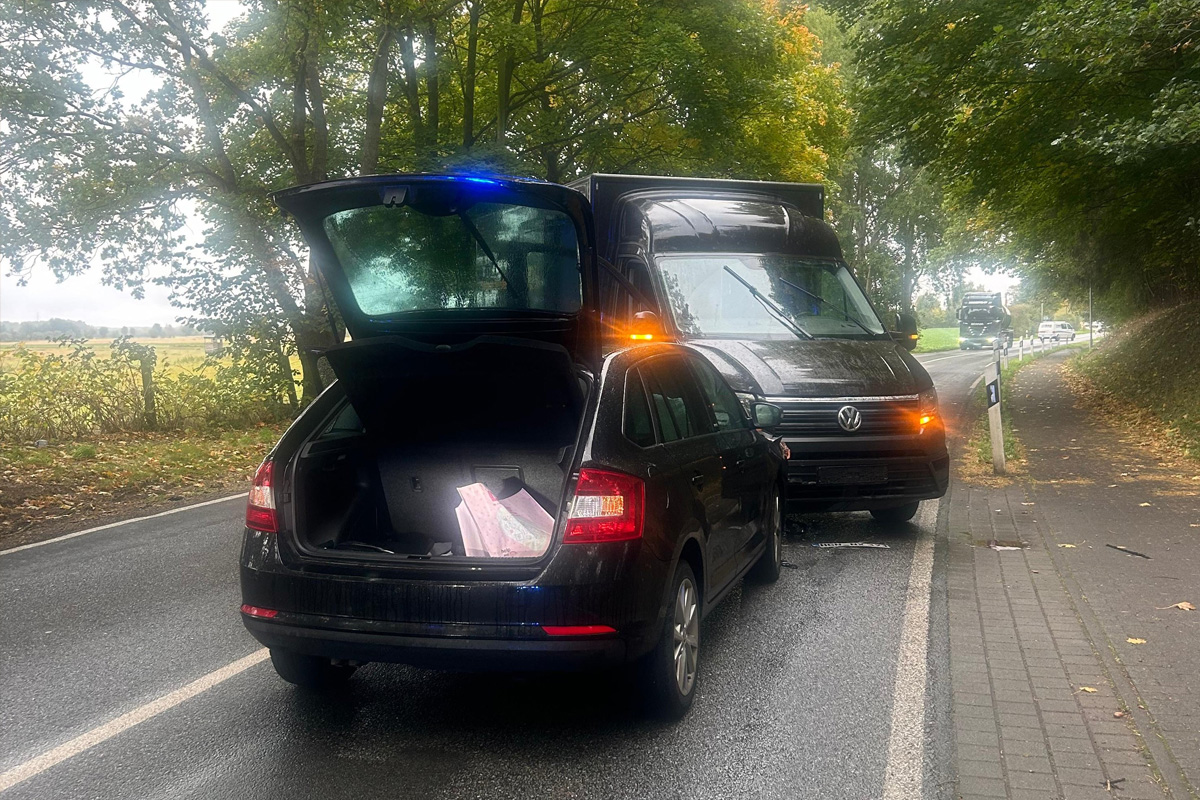 Gegen 15:15 Uhr befuhr ein 44-jähriger Paketzulieferer die Stralendorfer Straße aus Pampow kommend, als er mit seinem VW-Transporter beim Abbiegen in eine Grundstücksauffahrt mit dem im Gegenverkehr befindlichen Skoda kollidierte.