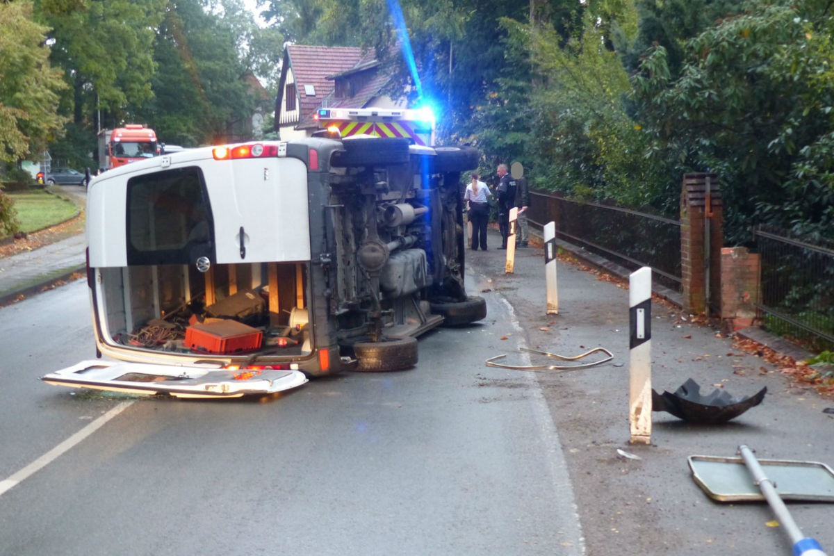 Am Donnerstag ist in Petershagen ein fahrender Transporter ins Schleudern gekommen und dabei umgestürzt.