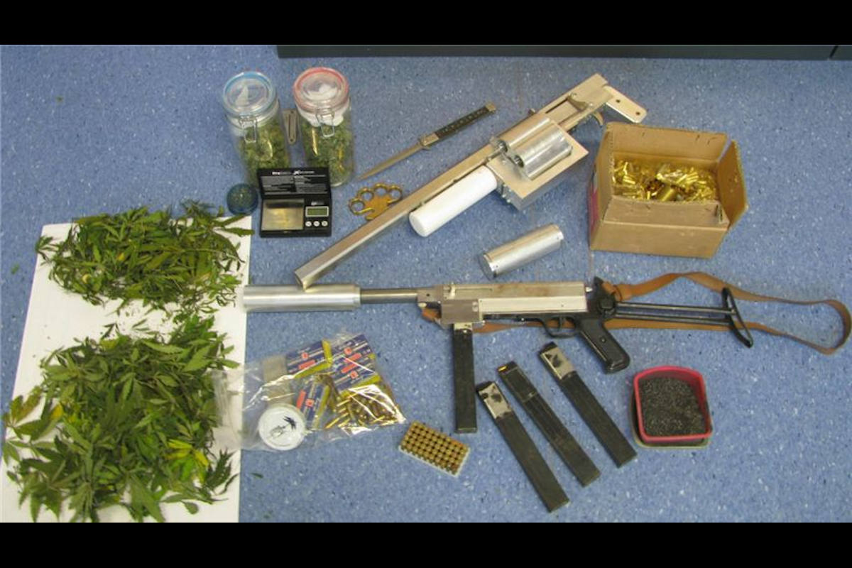 Als am 21.01.2021 das Wohnhaus des Verdächtigen durchsucht wurde, machten die Ermittler große Augen. Neben einem Raum, in dem eine professionelle Indoor-Anlage zur Aufzucht von Cannabispflanzen installiert war, fanden die Beamten eine größere Menge an geerntetem Marihuana in Einmachgläsern. Als "Zufallsfund" wurden bei dem Verdächtigen, der ausgebildeter Metallbauer ist, selbstgebaute Waffen größeren Kalibers sowie eine größere Anzahl an Munition verschiedenen Kalibers vorgefunden und sichergestellt.