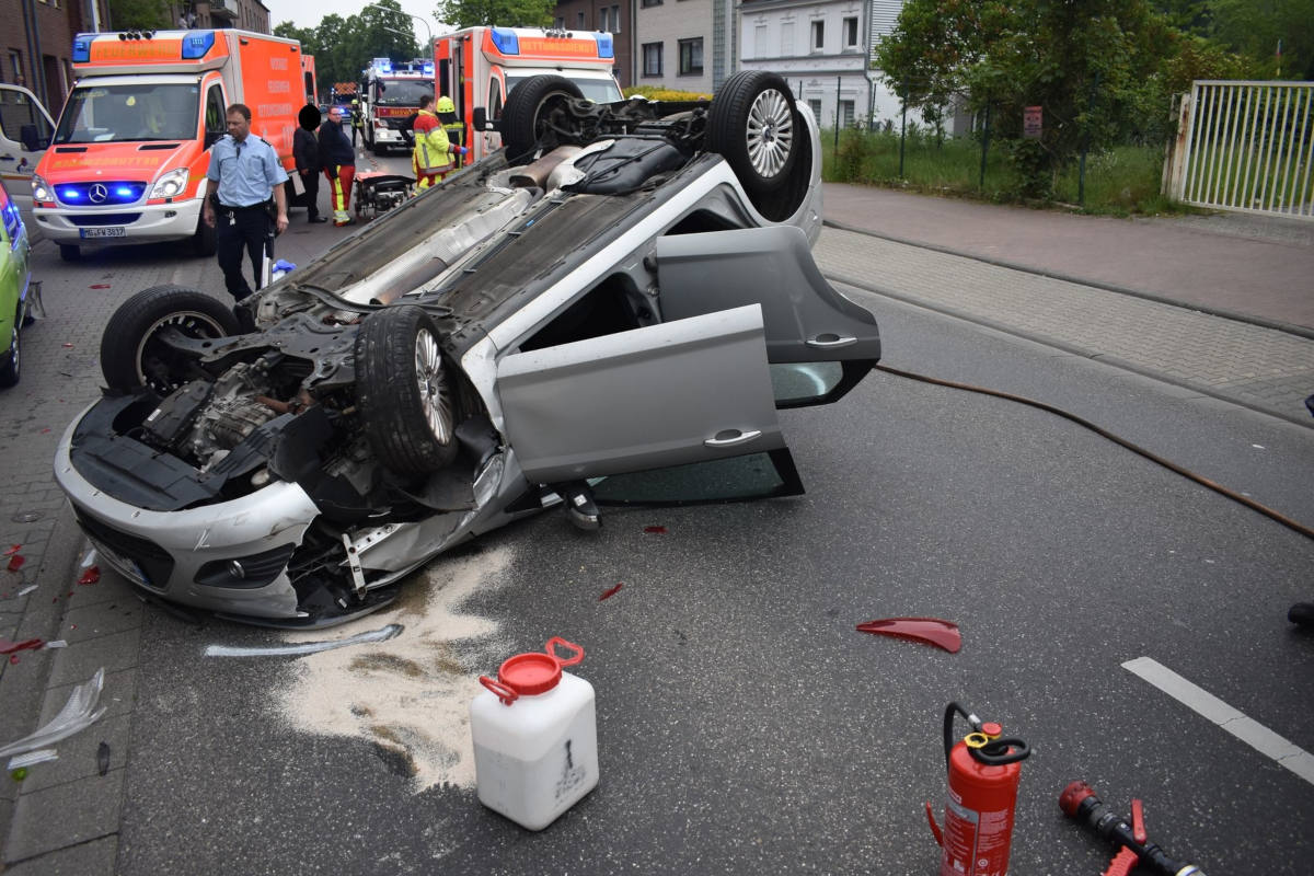 Der Ford wurde durch die Wucht des Aufpralls vorn angehoben, überschlug sich und blieb auf dem Dach liegen.