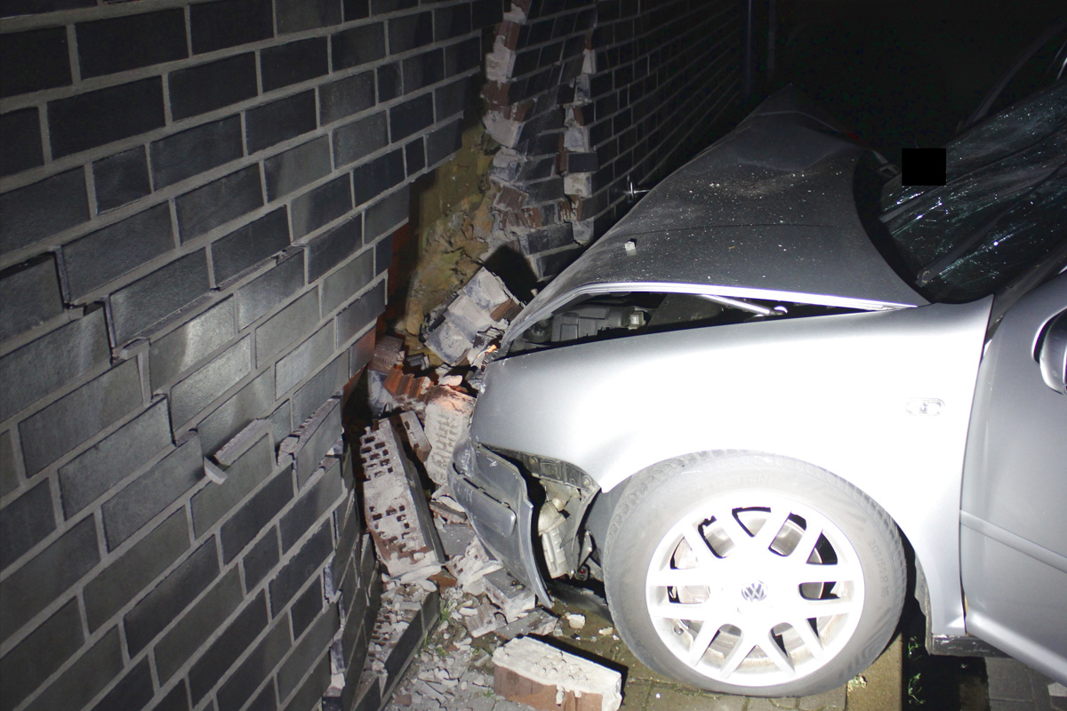 Durch den Audi verunfallte der Golf und prallte gegen eine Hauswand. (Bildquelle: Polizei Minden-Lübbecke)