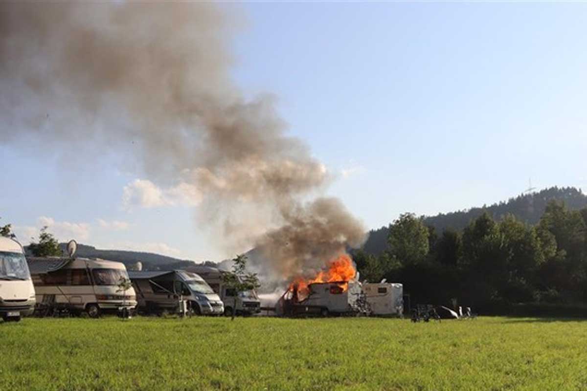 Das in Brand geratene Wohnmobil war zur Zeit des Brandes verlassen und die Besitzer nicht vor Ort.