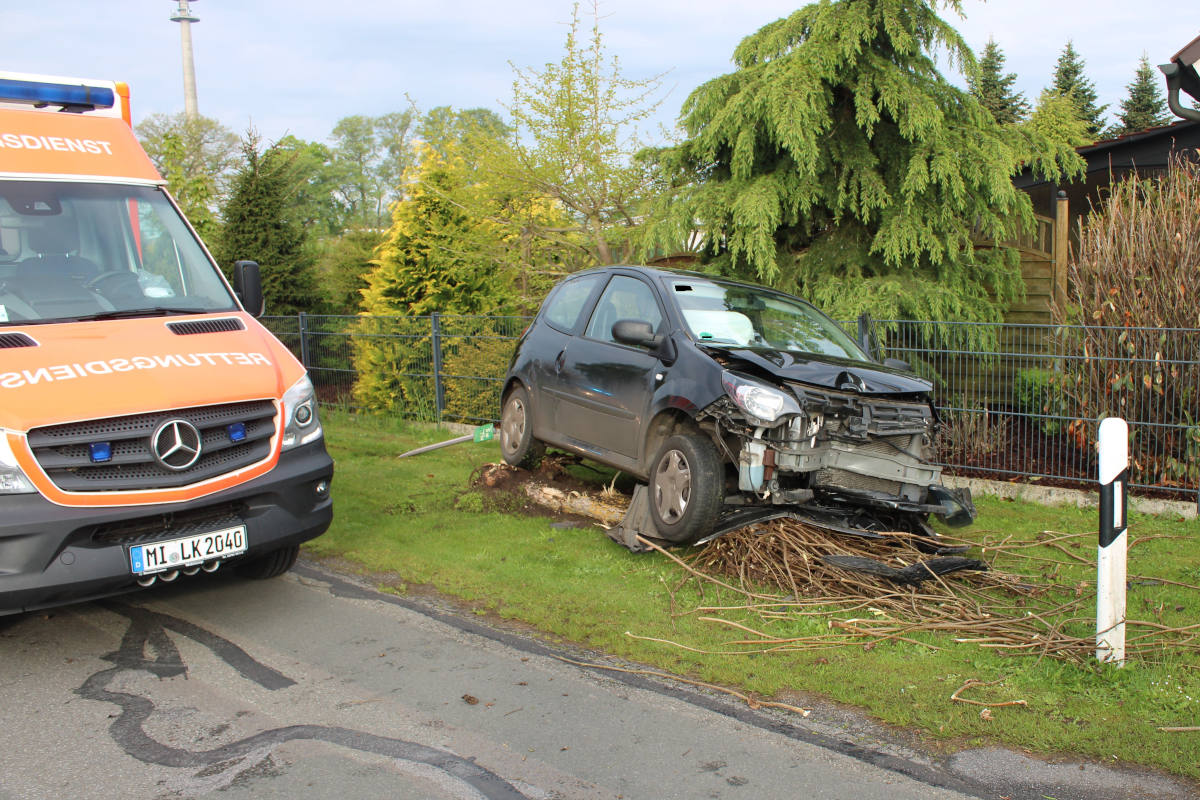 Der Baum wurde hierbei samt Wurzeln aus dem Boden gerissen. Die 35-Jährige zog sich hierbei Verletzungen zu und wurde nach notärztlicher Behandlung vor Ort dem Krankenhaus Rahden zugeführt. Das Auto war nicht mehr fahrbereit und musste abgeschleppt werden.