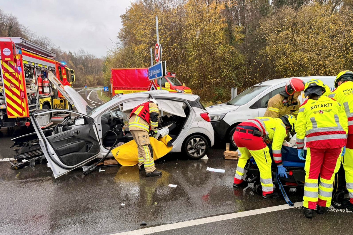 In Ratingen kam es am Mittwoch, 19.11.2025, zu einer Kollision von drei Pkw auf der Mettmanner Straße. Eine Person wurde schwer verletzt aus ihrem Fahrzeug befreit, zwei weitere Personen erlitten leichte Verletzungen.