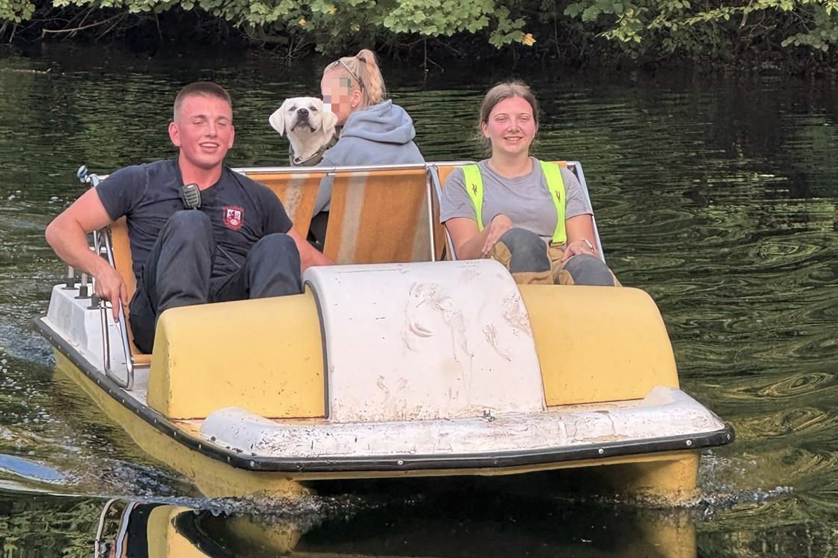 Eine alternative Zugangsmöglichkeit bot sich schließlich vom Wasser aus. Der zufällig anwesende Betreiber eines nahegelegenen Bootsverleihs stellte der Feuerwehr ein Tretboot zur Verfügung.