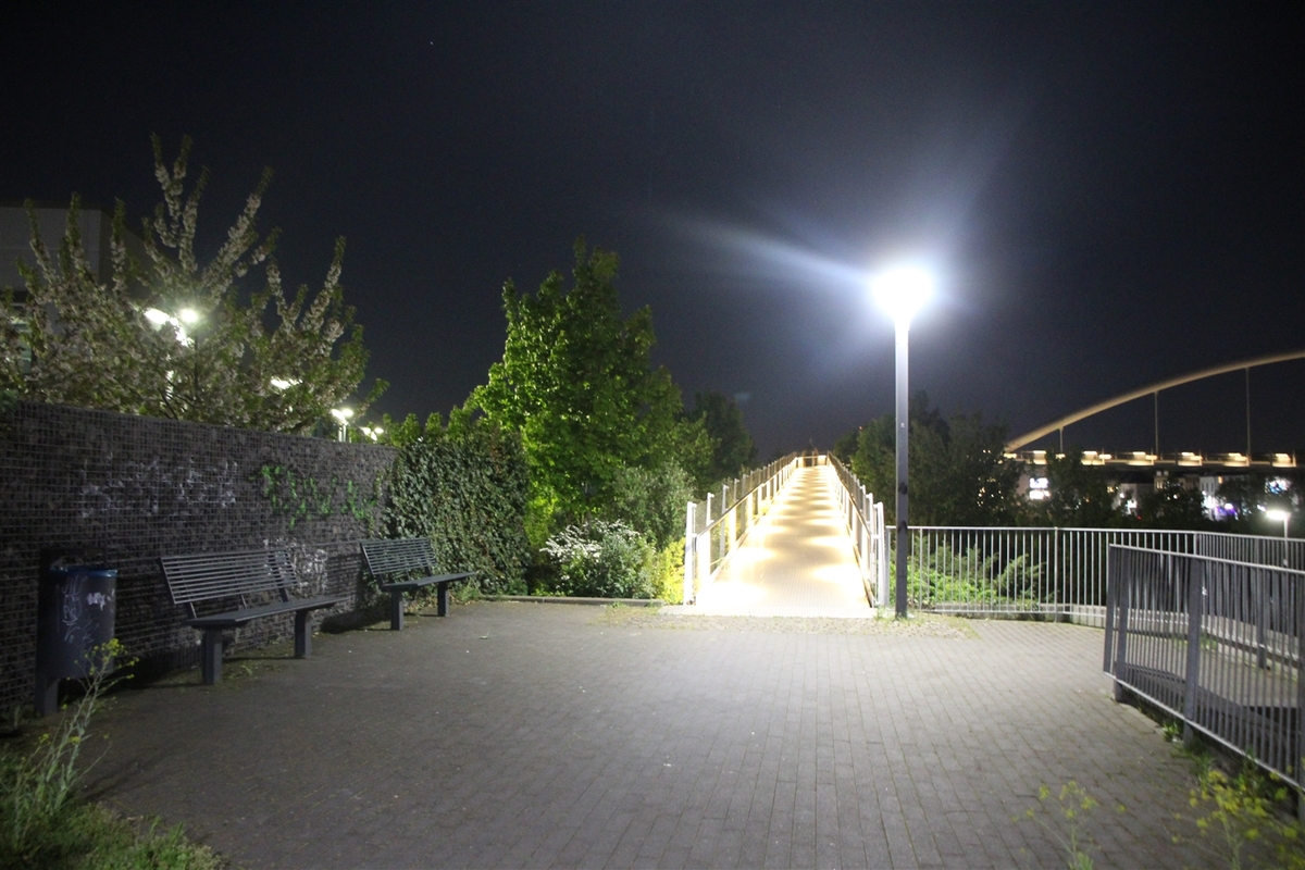 Auf der Pierburgbrücke kam es zu dem Überfall (Bildquelle: Kreispolizeibehörde Rhein-Kreis Neuss)
