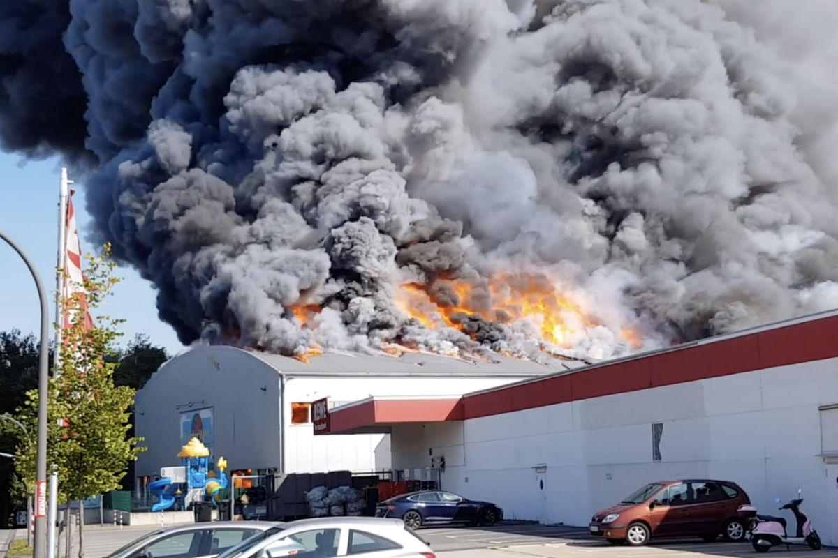 Die Halle eines Indoor-Spielplatzes brannte in voller Ausdehnung. Nach aktuellen Erkenntnissen konnten alle Menschen das Gebäude unverletzt verlassen.