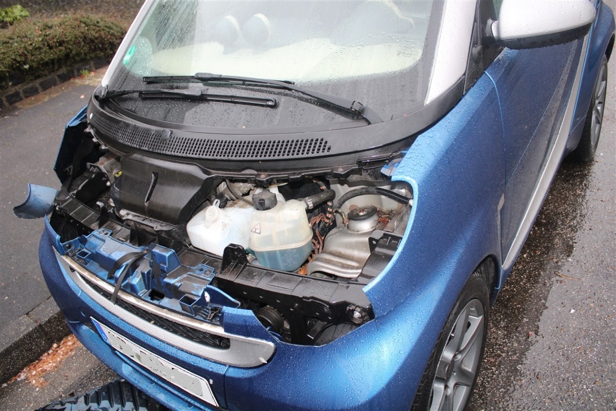 Beschädigter Smart (Bildquelle: Kreispolizeibehörde Kleve)