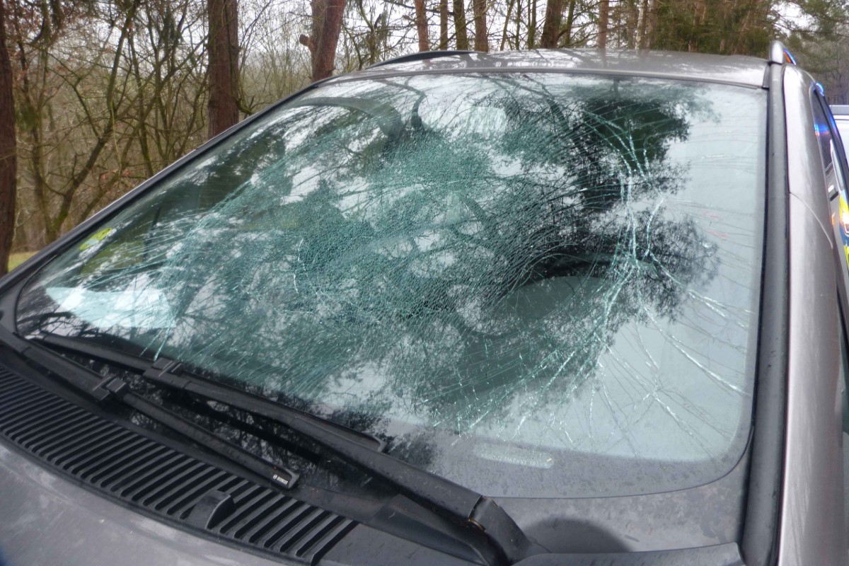 Plötzlich löste sich von dem Lastwagen eine Eisplatte, die die Windschutzscheibe des Fahrzeugs traf. Die Scheibe trug dabei einen erheblichen Schaden davon. Ob der Lastwagenfahrer die Situation bemerkte, ist unbekannt; er setzte seine Fahrt unvermindert fort.