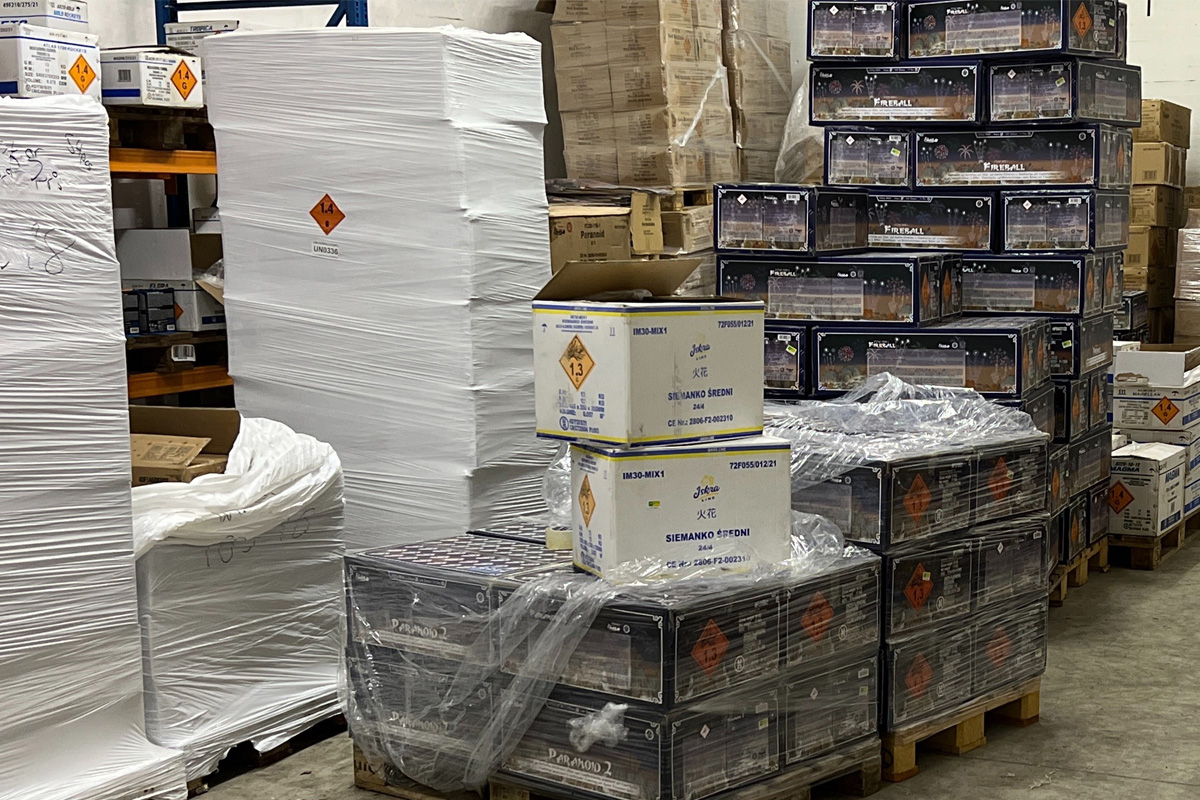 Feuerwerk der Kategorie F4, überwiegend legal gelagert in einem ehemaligen Munitionsbunker. Gegen einen der beiden Verdächtigen wurde bereits in der Vergangenheit in diesem Kriminalitätsfeld ermittelt. Die Ermittlungen dauern an.