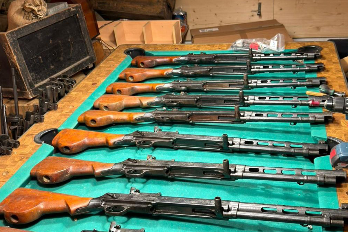 Im Zuge fortlaufender Befragungen offenbarte der Beschuldigte ein weiteres Versteck in dem Gebäude. In einem verborgenen, etwa 120 cm hohen Kellerraum, der sich hinter einer Vitrine befand, stießen die Einsatzkräfte auf 29 Maschinengewehre und drei Panzerbüchsen.