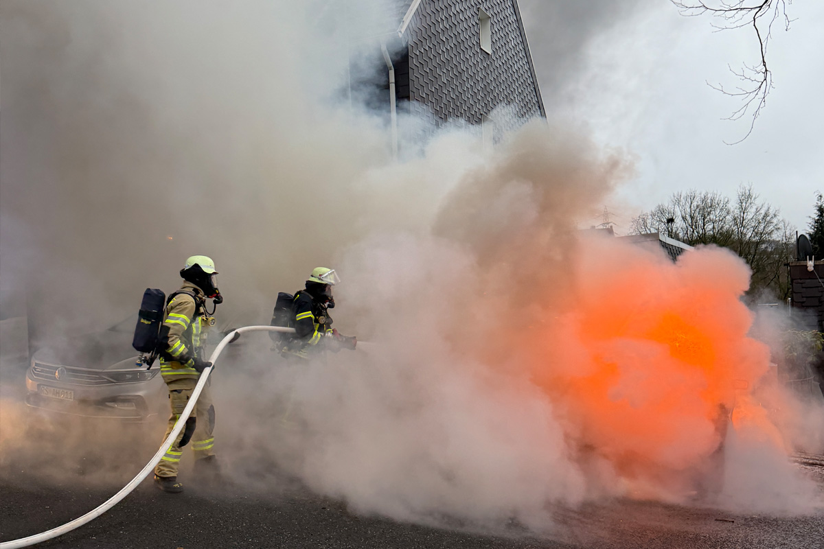 Am Morgen des 22.02.2026 ist in der Lohengrinstraße in Remscheid (NRW) ein Pkw in Brand geraten. Beim Eintreffen der Feuerwehr stand das Fahrzeug bereits in Vollbrand. Eine Ausbreitung auf ein weiteres Auto konnte verhindert werden.