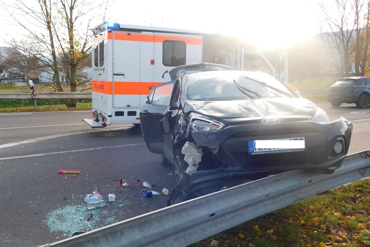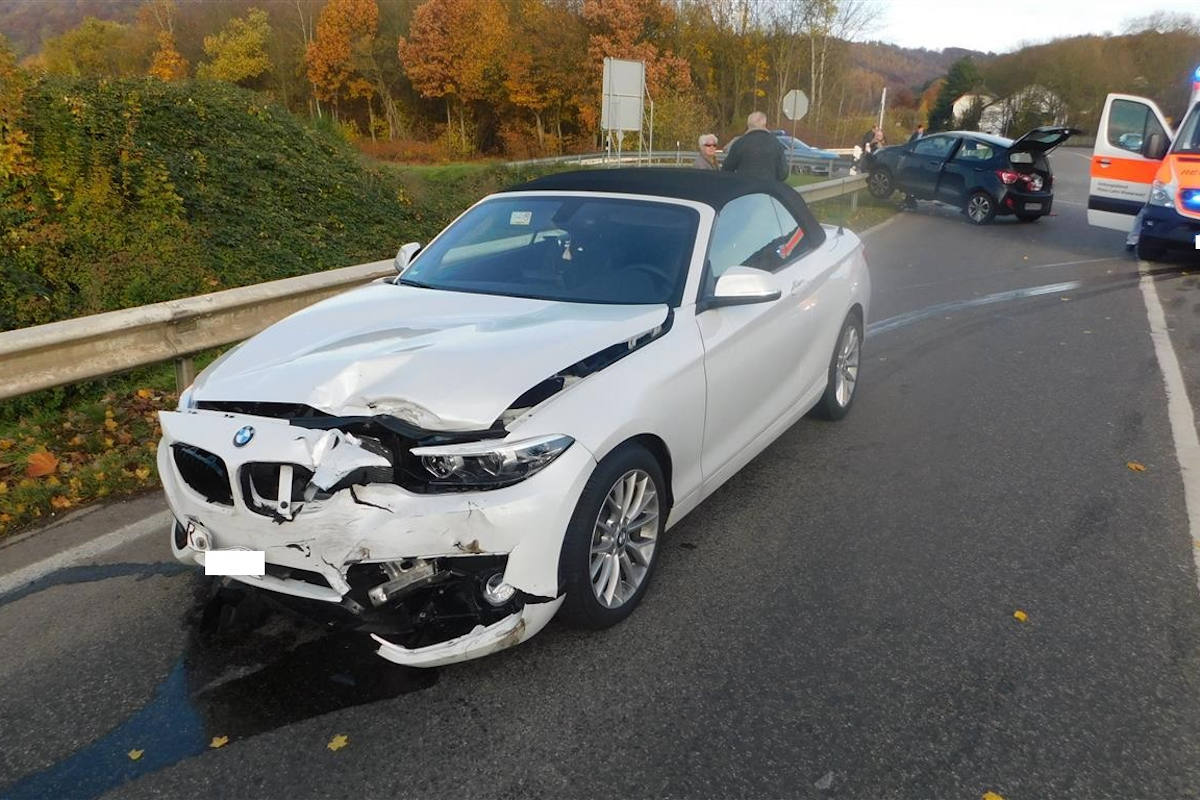 Im Zuge der Unfallaufnahme stellte sich heraus, dass ein 85-jähriger PKW-Fahrer, der von der B 42 auf die L 87 auffahren wollte, die Vorfahrt einer von links kommenden 19-jährigen missachtete. Aufgrund der Kollision der beiden Fahrzeuge wurde der Kleinwagen der jungen Frau derart herumgeschleudert, dass dieser sich überschlug und letztlich auf einer Leitplanke zum stehen kam.