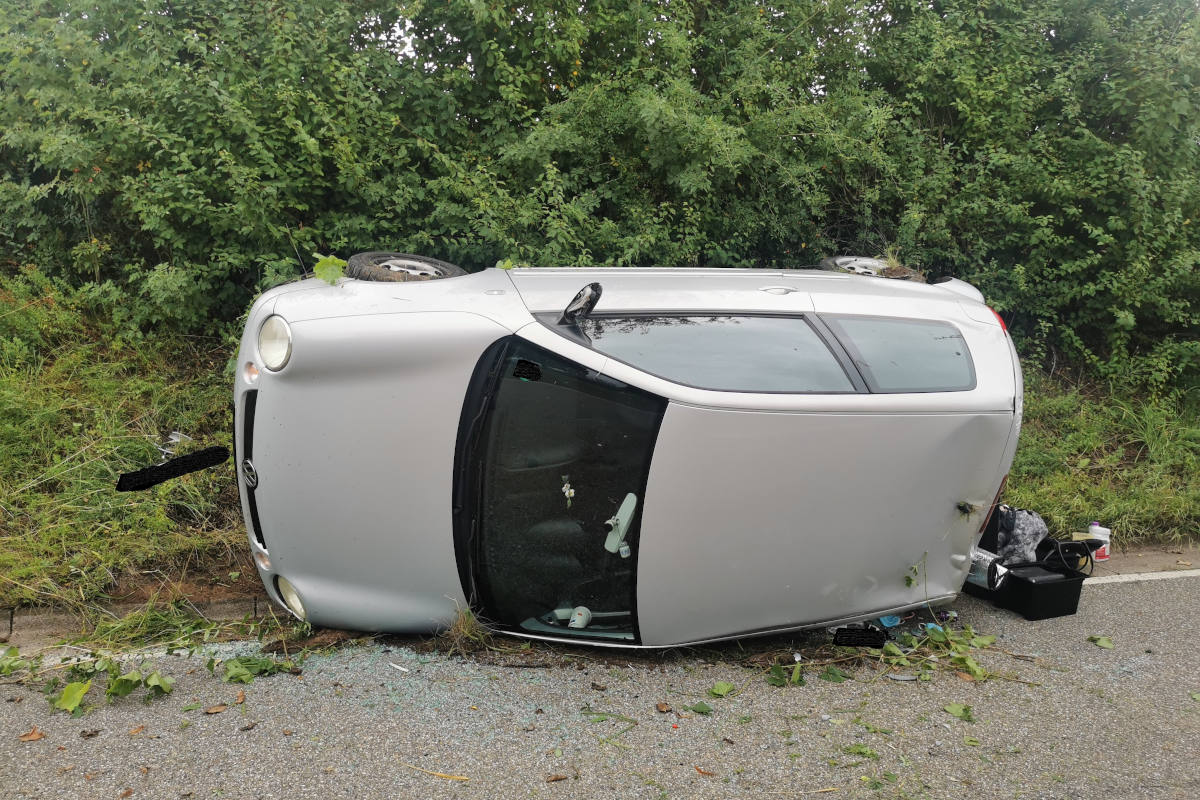 Gestern Morgen (23.08.) kam eine 22-jährige Fahrerin aus dem Kreis SÜW zwischen Rhodt und Hainfeld mit ihrem PKW zu weit nach rechts von der Fahrbahn ab und überschlug sich, sodass sie letztlich auf der Gegenfahrbahn auf der Seite liegend zum Stehen kam.