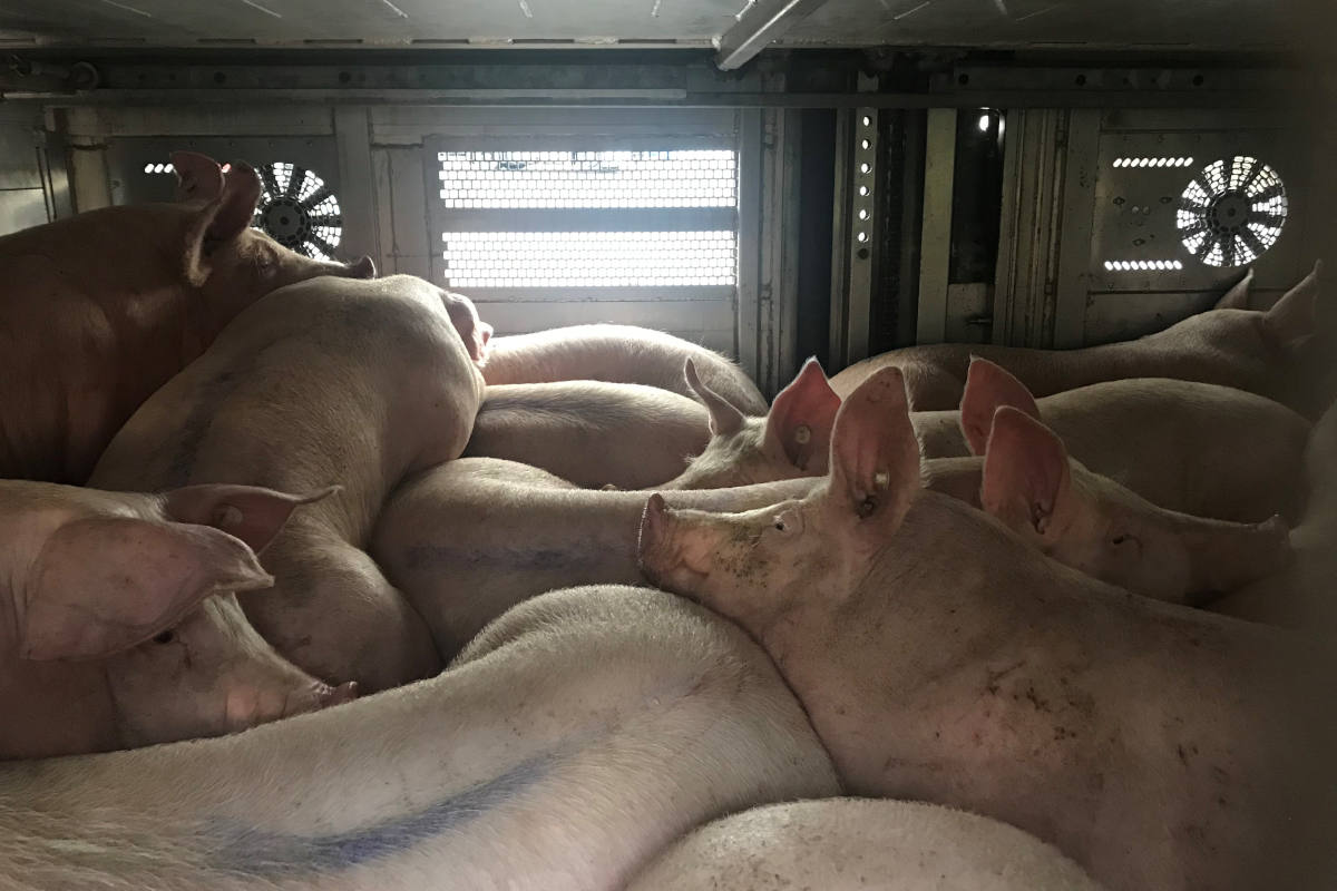 Geladene Mastschweine im kontrollierten Viehtransport (Bildquelle: Polizeiinspektion Rotenburg)