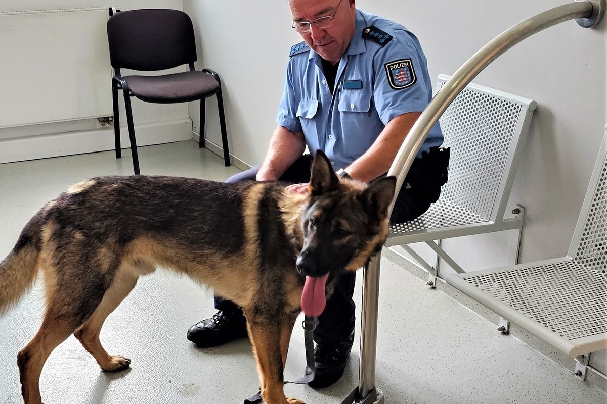 Nach der Fahrt zur Polizeiinspektion in Sondershausen verweilte "Kommissar Rex" eine kurze Zeit auf der Dienststelle und unterstützte die Beamten bei der Arbeit, bis ihn sein Herrchen dort wieder abholte. Dieser gab an, dass sich der junge Schäferhund während der Gassirunde selbstständig machte und unzureichend gehorsam war.