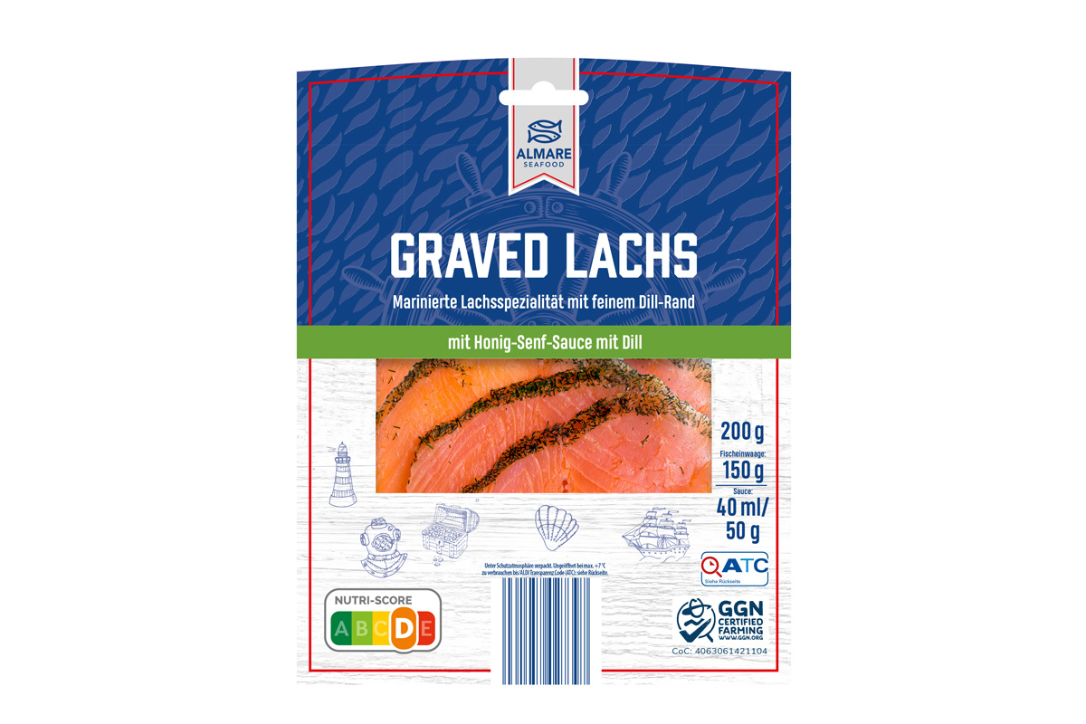 Der „Graved Lachs“ (150 g) mit dem Verbrauchsdatum 14.07.2025 ist betroffen. (Bildquelle: Guba-Trade GmbH)