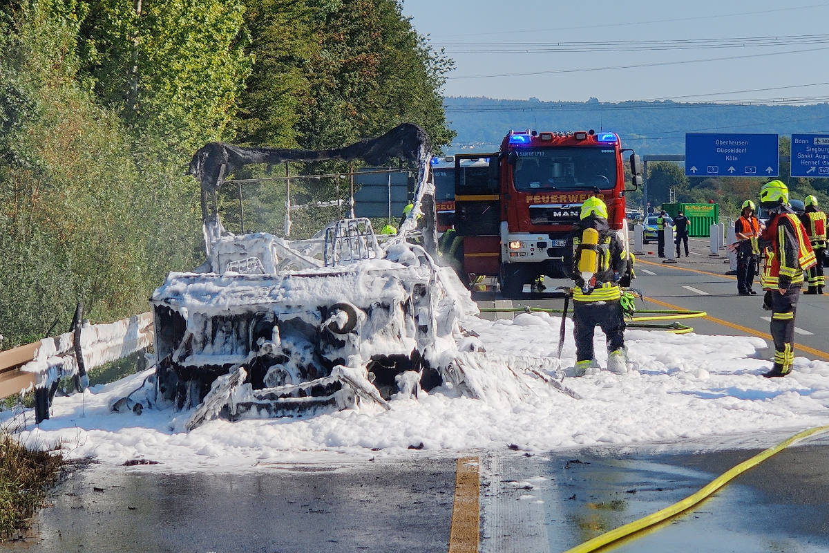Sankt Augustin – Wohnmobil brennt auf A3 vollständig aus