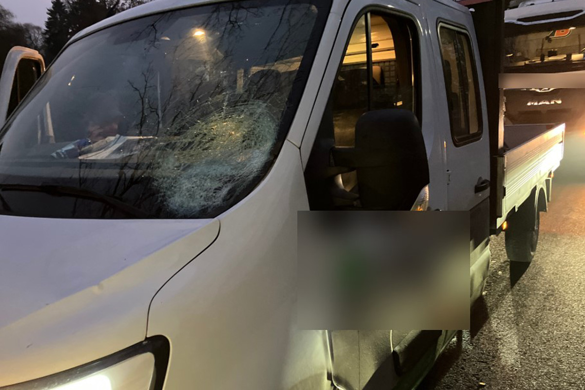 Die Eisplatte prallte in die Windschutzscheibe des Transporters. (Bildquelle: Polizeiinspektion Rotenburg)