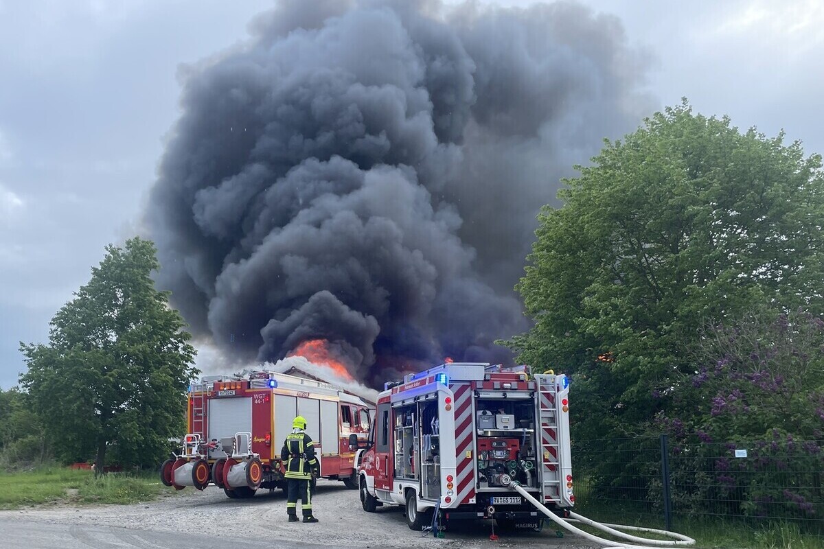 Schlier BW - Lagerhallen durch Flammen zerstört