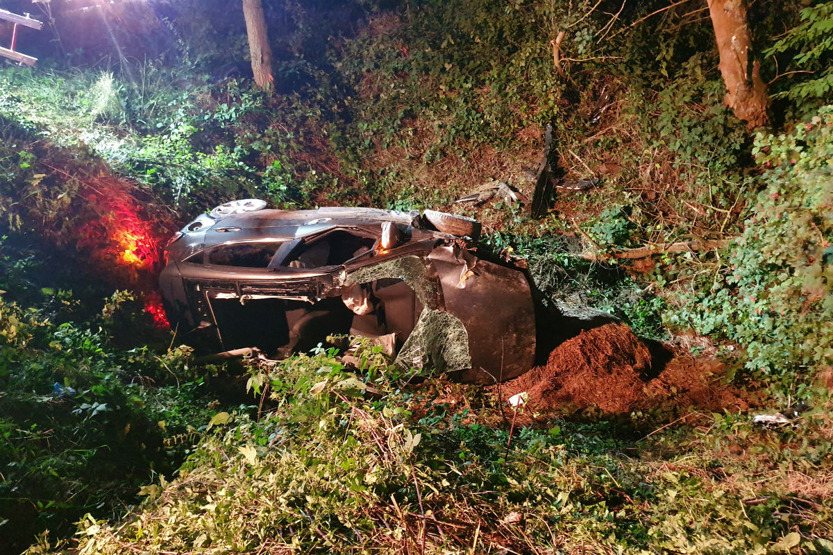 Durch das Notrufsystem konnte das Auto geortet werden. Von der Fahrbahn aus, war der Pkw nicht zu sehen. Zur Klärung der Unfallursache wurde dem Fahrer eine Blutprobe entnommen. Am Pkw entstand Totalschaden (Schadenshöhe ca. 20000EUR).