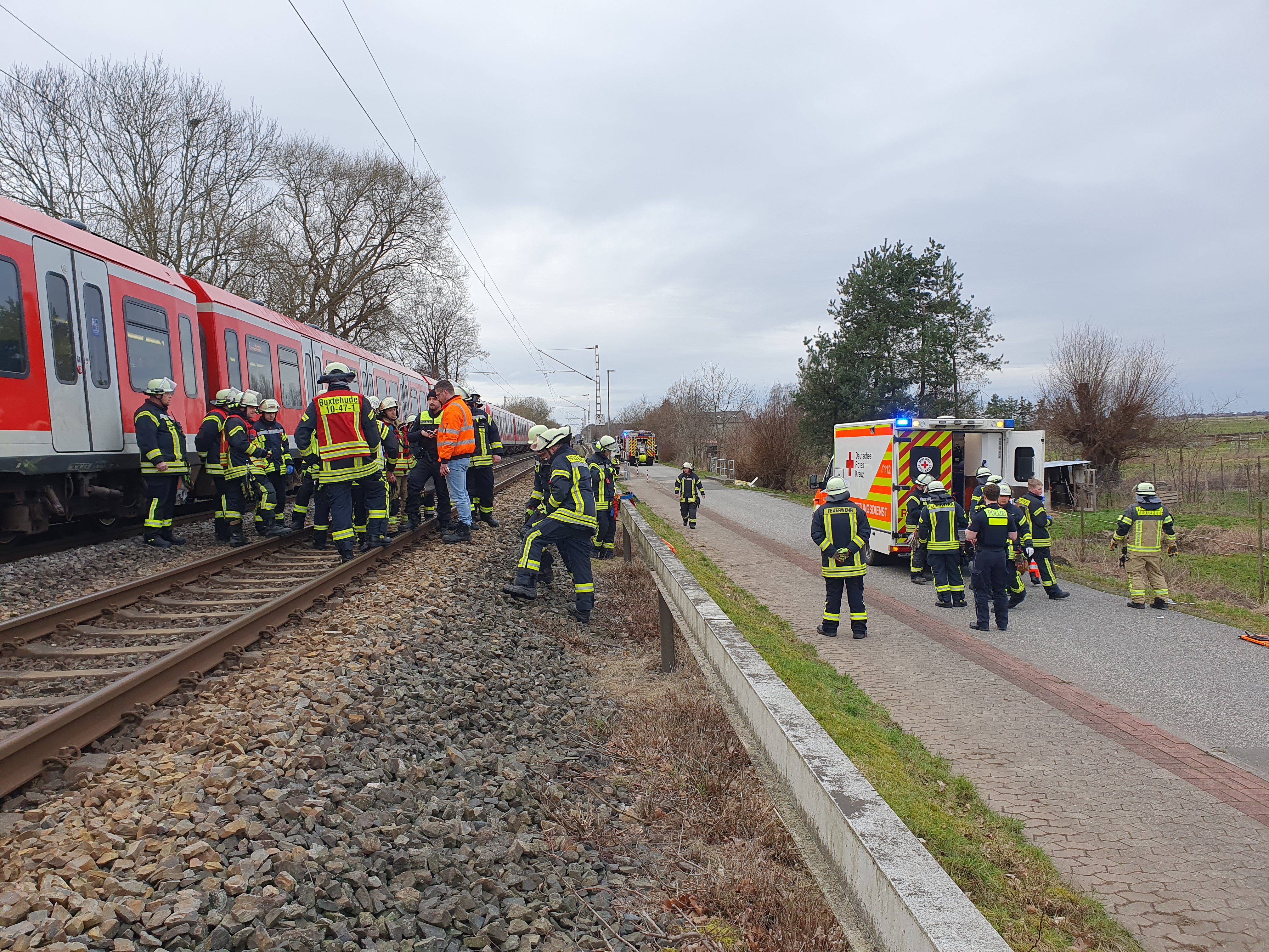 Eine zu der Zeit entgegenkommende S-Bahn konnte gerade noch rechtzeitig bremsen und kam kurz vor der Unfallstelle zum Stehen.