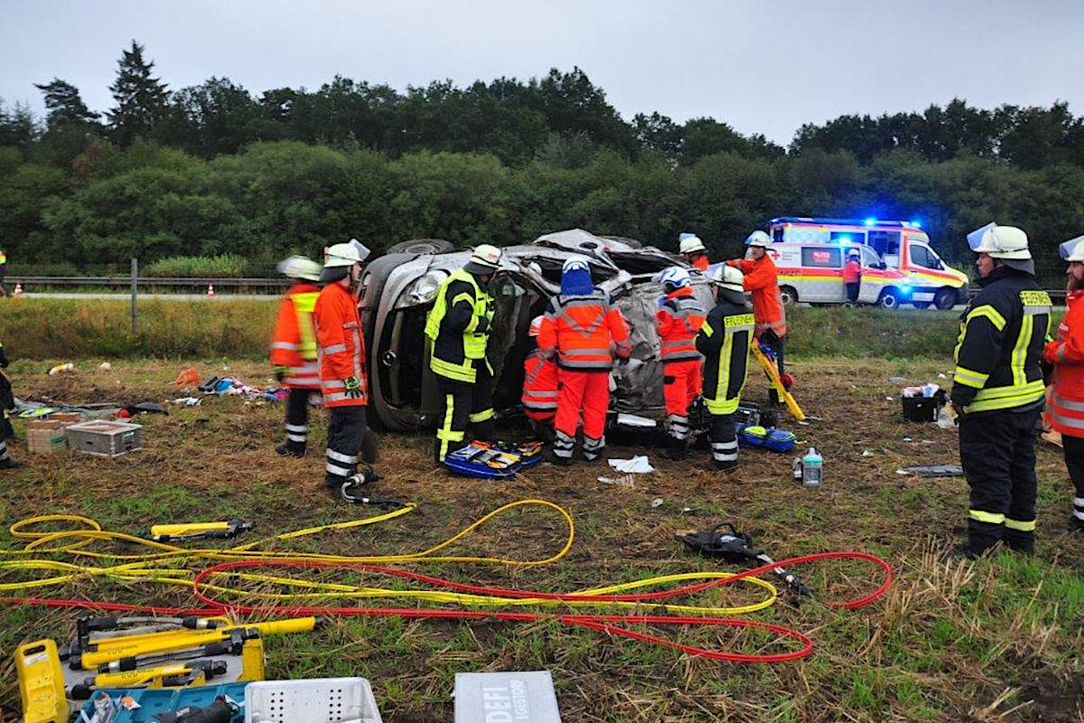 Schwerer Verkehrsunfall - Familie überschlägt sich mit Klein-Bus