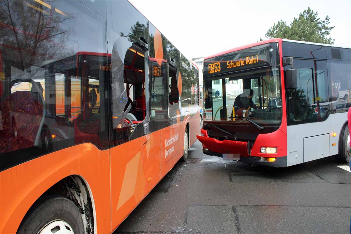 Bei einem Verkehrsunfall zwischen zwei Linienbussen am Dienstagmorgen (06.04.2021) in Schwerte sind vier Personen leicht verletzt worden.