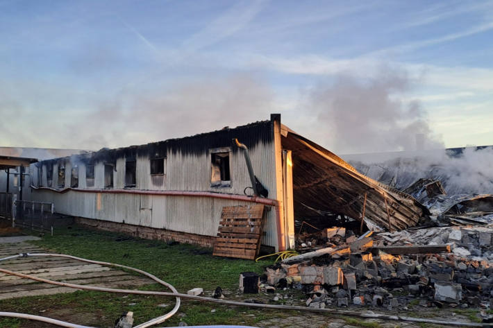 Folgend kam es zu einem Großeinsatz der Feuerwehr, um ein Übergreifen auf angrenzende Stallanlagen zu verhindern.